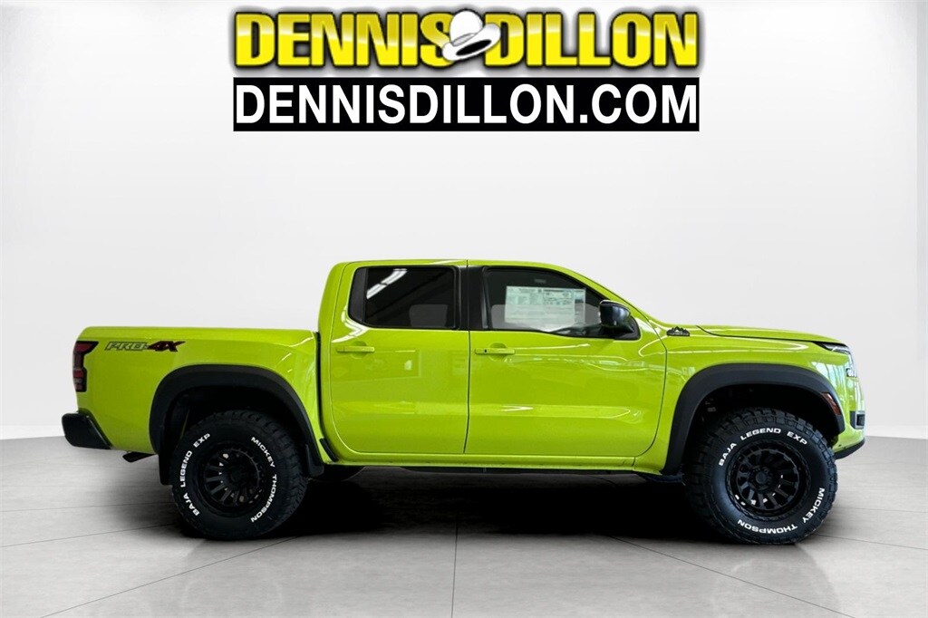 Citrus Strike 2026 Nissan Frontier PRO-4X 4D Crew Cab 4WD 9-Speed Automatic with Overdrive 3.8L DI DOHC 24V V6 17" Painted Alloy Wheels, 2-Tone Beadlock Style Wheel, 3.692 Axle Ratio, 4-Wheel Disc Brakes, 6 Speakers, ABS brakes, Air Conditioning, Alloy wheels, AM/FM radio: SiriusXM, Anti-whiplash front head restraints, Auto High-beam Headlights, Automatic temperature control, Blind Spot Warning, Brake assist, Bumpers: body-color, Delay-off headlights, Driver door bin, Driver vanity mirror, Dual front impact airbags, Dual front side impact airbags, Electronic Stability Control, Emergency communication system, Essentials Kit, Front anti-roll bar, Front Bucket Seats, Front Center Armrest, Front dual zone A/C, Front fog lights, Front reading lights, Front wheel independent suspension, Fully automatic headlights, Heated Front Bucket Seats, Illuminated entry, Intelligent Around View Monitor (I-AVM), Knee airbag, Leather steering wheel, Low tire pressure warning, Mud Flaps, Occupant sensing airbag, Overhead airbag, Overhead console, Panic alarm, Passenger door bin, Passenger vanity mirror, Power door mirrors, Power driver seat, Power passenger seat, Power steering, Power windows, Premium Paint, PRO Embroidered Premium Cloth Seat Trim, PRO-4X Convenience Package, Radio data system, Radio: SXM/AM/FM/AUX/USB Audio System, Rear anti-roll bar, Rear seat center armrest, Rear side impact airbag, Rear step bumper, Remote keyless entry, Security system, Speed control, Speed-sensing steering, Split folding rear seat, Steering wheel mounted audio controls, Tachometer, Telescoping steering wheel, Tilt steering wheel, Traction control, Trip computer, Variably intermittent wipers, Voltmeter, Wireless Apple CarPlay/Wireless Android Auto, Wireless Charging for Personal Devices.