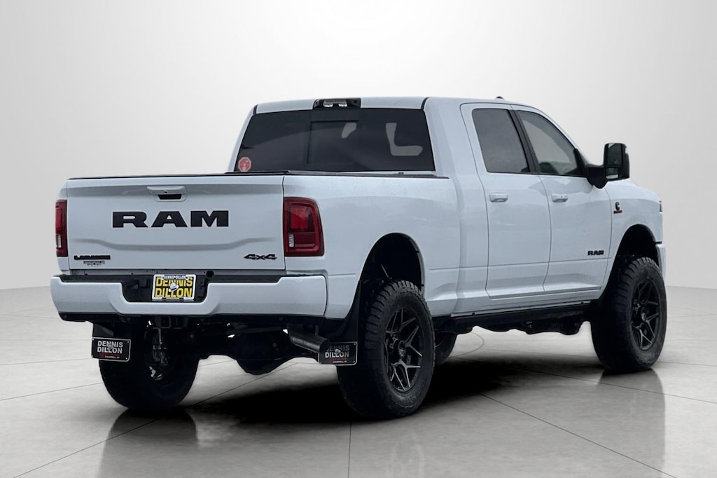 #1 Seat Foam Cushion, 10 Speakers, 115V Auxiliary Rear Power Outlet, 14.4" Touchscreen Display, 17 Speaker Harman/Kardon Premium Sound, 2 Way Rear Headrest Seat, 3.42 Axle Ratio, 4 Way Front Headrests, 4-Wheel Disc Brakes, 4G LTE Wi-Fi Hot Spot, 5th Wheel/Gooseneck Towing Prep Group, ABS brakes, Active Lane Management System, Adaptive Steering System, Air Conditioning, Alexa Built-in, Alloy wheels, AM/FM radio: SiriusXM with 360L, Anti-Spin Differential Rear Axle, Apple CarPlay, Apple CarPlay/Android Auto, Auto Adjust in Reverse Exterior Mirrors, Auto Dim Exterior Mirror, Auto High Beam Headlamp Control, Auto Power-Folding Mirrors, Auto-Dimming Exterior Passenger Mirror, Auto-dimming Rear-View mirror, Automatic temperature control, Black Exterior Truck Badging, Black Wheel Center Hub, Body Color Grille Surround, Brake assist, Bucket Seats, Bumpers: body-color, Center Stop Lamp with Cargo View Camera, Chrome Exterior Mirrors, Clearance Lamps, Compass, Connected Travel and Traffic Services, Connectivity - US/Canada, Dash Pass Thru Wire Circuits, Delay-off headlights, Delete Deployable Bed Step, Digital Rearview Mirror, Disassociated Touchscreen Display, Driver door bin, Driver vanity mirror, Drowsy Driver Detection, Dual Alternators Rated At 480 Amps, Dual front impact airbags, Dual front side impact airbags, Dual Wireless Charging Pad, Electronic Stability Control, Emergency Vehicle Alert System (EVAS), Exterior Mirrors Courtesy Lamps, Exterior Mirrors with Heating Element, Exterior Mirrors with Memory, Exterior Mirrors with Supplemental Signals, Foam Bottle Insert (door Trim Panel), For Details, Visit DriveUconnect.com, For More Info, Call 800-643-2112, Forward and Reverse Utility Lights, Front anti-roll bar, Front Center Armrest w/Storage, Front dual zone A/C, Front fog lights, Front License Plate Bracket, Front reading lights, Front Seat Back Map Pockets, Full Length Upgraded Floor Console, Fully automatic headlights, Garage door transmitter, Global Telematics Box Module, Gloss Black Grille Billets/Accents, Google Android Auto, GPS Antenna Input, GPS Navigation, HD Radio, Heated door mirrors, Heated Front Seats, Heated front seats, Heated Steering Wheel, Heated steering wheel, High Back Seats, Illuminated entry, Instrument Panel Mounted Auxiliary Switches, Integrated Voice Command with Bluetooth, Laramie Level 2 Plus Equipment Group, Leather Trim 40/20/40 Bench Seat, Leather Trimmed Bucket Seats, LED Bed Lighting, Low tire pressure warning, Manufacturer's Statement of Origin, Mirror Running Lights, MOPAR Deployable Bed Step, MOPAR Spray in Bedliner, MOPAR Trailer Camera Wiring with No Camera, Navigation System, Night Edition, Occupant sensing airbag, Off-Road Information Pages, on Board Power System - 2.4KW, Outside temperature display, Overhead airbag, Overhead console, Panic alarm, ParkView Rear Back-Up Camera, Passenger door bin, Passenger vanity mirror, Power 2-Way Driver Lumbar Adjust, Power 2-Way Passenger Lumbar Adjust, Power Adjust 8-Way Driver Seat, Power Adjust 8-Way Front Passenger Seat, Power Adjust Mirrors, Power Adjustable Convex Aux Mirrors, Power Adjustable Pedals with Memory, Power Deployable Running Boards, Power door mirrors, Power driver seat, Power Heated Fold Telescope Mirrors w/Memory, Power passenger seat, Power steering, Power Sunroof, Power Telescoping Mirrors, Power windows, Quick Order Package 24H Laramie, Radio data system, Radio: Uconnect 5 Nav with 14.4" Display, Radio: Uconnect 5 Navigation with 12.0" Display, Rain Sensitive Windshield Wipers, Rear 60/40 Folding Seat, Rear anti-roll bar, Rear reading lights, Rear seat center armrest, Rear step bumper, Rear window defroster, Remote keyless entry, Remote Tailgate Release, Security system, Selectable Tire Fill Alert, SiriusXM Radio Service, Siri Price includes: $1000 - 2026 National Bonus Cash . Exp. 04/30/2026 Price includes $12,500 of dealer added accesso