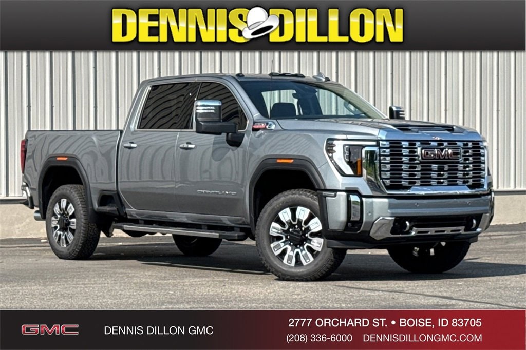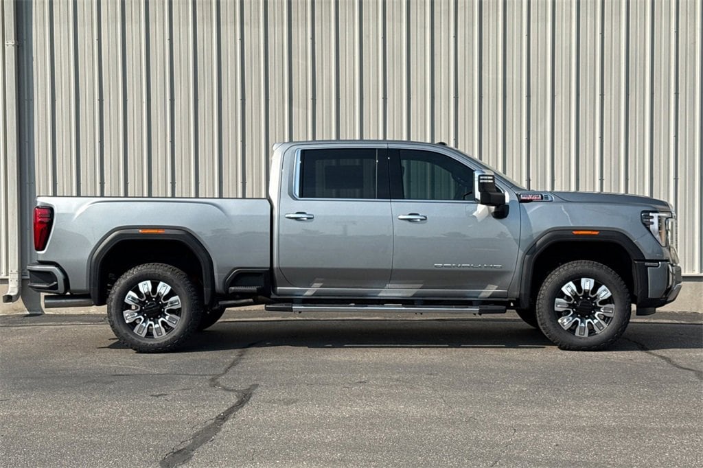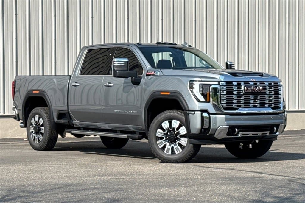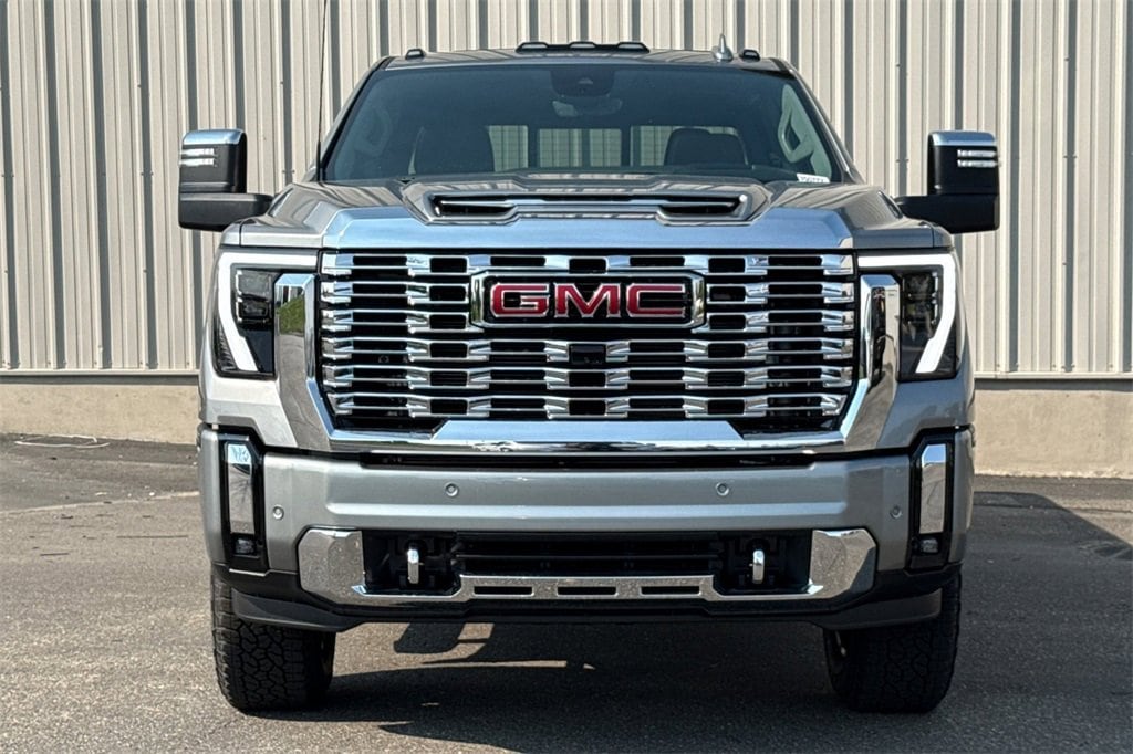 $8,189 off MSRP! 2025 GMC Sierra 2500HD Sterling Metallic Denali 4WD 10-Speed Automatic Duramax 6.6L V8 Turbodiesel 4D Crew Cab 10-Speed Automatic, 4WD, Black Leather, 12-Way Power Driver Seat Adjuster w/Lumbar, 12-Way Power Passenger Seat Adjuster w/Lumbar, 120-Volt Bed Mounted Power Outlet, 120-Volt Instrument Panel Power Outlet, 2 Charge-Only Rear USB Ports, 2 Charge/Data USB Ports Inside Center Console, 2 USB Ports, 2-Speed Active Transfer Case, 220-Amp Alternator, 4-Wheel Disc Brakes, 7 Speakers, ABS brakes, Air Conditioning, Alloy wheels, AM/FM radio: SiriusXM with 360L, Apple CarPlay/Android Auto, Auto High-beam Headlights, Auto-dimming door mirrors, Auto-dimming Rear-View mirror, Automatic Emergency Braking, Automatic temperature control, Bed View Camera w/2 Trailer Camera Provisions, Bose Premium 7-Speaker Sound System, Brake assist, Buckle to Drive, Bumpers: body-color, Compass, Deep-Tinted Glass, Delay-off headlights, Denali Reserve Package, Driver door bin, Driver Memory, Driver vanity mirror, Dual front impact airbags, Dual front side impact airbags, Electric Rear-Window Defogger, Electronic Stability Control, Emergency communication system: OnStar, Engine Block Heater, Exhaust Brake, Floor-Mounted Center Console, Following Distance Indicator, Forge Perforated Leather-Appointed Front Seat Trim, Forward Collision Alert, Front anti-roll bar, Front Bucket Seats, Front Center Armrest, Front dual zone A/C, Front fog lights, Front License Plate Kit, Front Pedestrian Braking, Front Rain-Sensing Wipers, Front reading lights, Front wheel independent suspension, Fully automatic headlights, Garage door transmitter, Genuine wood dashboard insert, Genuine wood door panel insert, HD Surround Vision, Heated 2nd Row Outboard Seats, Heated door mirrors, Heated Driver & Front Outboard Passenger Seats, Heated front seats, Heated rear seats, Heated steering wheel, Heavy-Duty 80 Amp Battery, Hill Descent Control, Hitch Guidance w/Hitch View, Illuminated entry, In-Vehicle Trailering System App, Inside Rearview Auto-Dimming Rear Camera Mirror, IntelliBeam Automatic High Beam On/Off, Keyless Open & Start, Lane Departure Warning System, LED Cargo Area Lighting, LED Smoked Amber Roof Marker Lamps, Low tire pressure warning, Manual Tilt-Wheel/Telescoping Steering Column, Memory seat, Multicolor 15 Diagonal Head-Up Display, Occupant sensing airbag, Off-Road Suspension, OnStar Services Capable, Outside temperature display, Overhead airbag, Overhead console, Panic alarm, Passenger door bin, Passenger vanity mirror, Pickup Box, Polished Exhaust Tip, Power door mirrors, Power driver seat, Power Front Passenger Windows w/Express Up/Down, Power passenger seat, Power Sliding Rear Window w/Defogger, Power steering, Power Sunroof, Power windows, Preferred Equipment Group 5SA, Push Button Start, Radio: AM/FM w/Premium GMC Infotainment System, Rain sensing wipers, Rear Cross Traffic Alert, Rear reading lights, Rear seat center armrest, Rear step bumper, Rear Wheelhouse Liners, Rear window defroster, Remote keyless entry, Remote Vehicle Starter System, Safety Alert Seat, Security system, Signature Chrome Denali Grille, SiriusXM w/360L Trial Subscription, Speed control, Speed-sensing steering, Split folding rear seat, Spray-On Pickup Bedliner w/GMC Logo, Steering Wheel Audio Controls, Steering wheel mounted audio controls, Tachometer, Technology Package, Telescoping steering wheel, Tilt steering wheel, Traction control, Trailer Cam Provisions & Trailer Viewing Software, Trailer Side Blind Zone Alert, Trip computer, Turn signal indicator mirrors, Ultrasonic Front & Rear Park Assist, Unauthorized Entry Theft-Deterrent System, Universal Home Remote, Variably intermittent wipers, Ventilated Driver & Front Passenger Seats, Ventilated front seats, Voltmeter, Wheels: 20 Ultra Bright Machined, Winter Grille Cover, Wireless Charging, Wireless Pho Price includes: $1000 - Buick & GMC Consumer Cash Program. Exp. 11/0