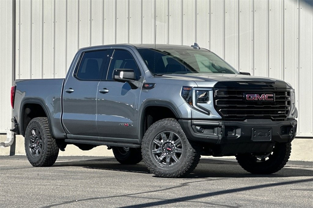 $11,236 off MSRP! 2026 GMC Sierra 1500 Sterling Metallic AT4X 4WD 10-Speed Automatic EcoTec3 6.2L V8 4D Crew Cab 10-Speed Automatic, 4WD, Obsidian Rush Leather, 12 Speakers, 120-Volt Bed Mounted Power Outlet, 120-Volt Interior Power Outlet, 16-Way Power Driver Seat Adjuster w/Lumbar, 16-Way Power Passenger Seat Adjuster w/Lumbar, 170 Amp Alternator, 2 Charge/Data USB Ports Inside Center Console, 2 Type-C Charge-Only Rear USB Ports, 2 USB Ports, 220 Amp Alternator, 3.23 Rear Axle Ratio, 4-Wheel Disc Brakes, ABS brakes, Air Conditioning, Alloy wheels, AM/FM radio: SiriusXM with 360L, Apple CarPlay/Android Auto, Auto High-beam Headlights, Auto-dimming door mirrors, Auto-dimming Rear-View mirror, Automatic Emergency Braking, Automatic temperature control, Auxiliary External Transmission Oil Cooler, Bed View Camera, Block heater, Bose Premium Series w/12-Speaker System, Brake assist, Buckle to Drive, Color-Keyed Carpeting Floor Covering, Compass, Deep-Tinted Glass, Delay-off headlights, Driver door bin, Driver Memory, Driver vanity mirror, Driver-Selectable Full-Locking Front Differential, Driver-Selectable Full-Locking Rear Differential, Dual Active Exhaust, Dual front impact airbags, Dual front side impact airbags, Electric Rear-Window Defogger, Electronic Stability Control, Emergency communication system: OnStar, External Engine Oil Cooling, Floor-Mounted Center Console, Following Distance Indicator, Forward Collision Alert, Front anti-roll bar, Front Bucket Seats, Front Center Armrest, Front dual zone A/C, Front fog lights, Front License Plate Kit, Front Pedestrian Braking, Front Prem Floor Liners w/Removable Carpet Insert, Front Rain-Sensing Wipers, Front reading lights, Front wheel independent suspension, Full Grain Leather Seat Trim, Fully automatic headlights, Garage door transmitter, Genuine wood dashboard insert, Genuine wood door panel insert, Gloss Black Header w/Drk Nickel Grille Insert Bars, HD Surround Vision, Heads-Up Display, Heated 2nd Row Outboard Seats, Heated door mirrors, Heated Driver & Front Outboard Passenger Seating, Heated front seats, Heated rear seats, Heated steering wheel, Heavy-Duty Air Filter, Hill Descent Control, Hitch Guidance, Hitch View, Illuminated entry, In-Vehicle Trailering System App, Integrated Trailer Brake Controller, IntelliBeam Automatic High Beam On/Off, Keyless Open & Start, Lane Keep Assist w/Lane Departure Warning, Leather steering wheel, LED Cargo Area Lighting, Low tire pressure warning, Memory seat, Multicolor 15 Diagonal Head-Up Display, MultiPro Tailgate Audio System by Kicker (LPO), Navigation System, Occupant sensing airbag, Off-Road High Clearance Step (LPO), Off-Road Suspension, OnStar Services Capable, Outside temperature display, Overhead airbag, Overhead console, Panic alarm, Passenger door bin, Passenger vanity mirror, Perimeter Lighting, Power Door Locks, Power door mirrors, Power driver seat, Power Front Passenger Windows w/Express Up/Down, Power Front Windows w/Driver Express Up/Down, Power moonroof, Power passenger seat, Power Rake & Telescoping Steering Column, Power Rear Windows w/Express Down, Power Sliding Rear Window w/Rear Defogger, Power steering, Power Sunroof, Power windows, Preferred Equipment Group 4SG, Push Button Start, Radio data system, Radio: Premium GMC Infotainment Audio System, Rain sensing wipers, Rear Cross Traffic Braking, Rear Pedestrian Detection, Rear Prem Floor Liners w/Removable Carpet Insert, Rear reading lights, Rear seat center armrest, Rear step bumper, Rear Wheelhouse Liners, Rear window defroster, Remote keyless entry, Remote Vehicle Starter System, Safety Alert Seat, Security system, SiriusXM w/360L Trial Subscription, Speed control, Speed-sensing steering, Split folding rear seat, Spray-On Pickup Bedliner w/GMC Logo, Steering Wheel Audio Controls, Steering wheel mounted audio controls, Tachometer, Telescoping steer Price includes: $1750 - Buick & GMC Consumer Cash Program. Exp. 11