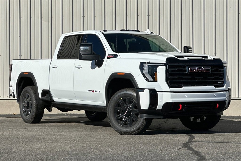 $4,936 off MSRP! 2026 GMC Sierra 2500HD Summit White AT4 4WD 10-Speed Automatic Duramax 6.6L V8 Turbodiesel 4D Crew Cab 10-Speed Automatic, 4WD, Jet Black With Kalahari Accents Leather, 10-Way Power Driver Seat Adjuster w/Lumbar, 10-Way Power Passenger Seat Adjuster w/Lumbar, 120-Volt Bed Mounted Power Outlet, 120-Volt Instrument Panel Power Outlet, 2 Charge-Only Rear USB Ports, 2 Charge/Data USB Ports Inside Center Console, 2 USB Ports, 2-Speed Active Transfer Case, 220-Amp Alternator, 4-Wheel Disc Brakes, 7 Speakers, ABS brakes, Air Conditioning, Alloy wheels, AM/FM radio: SiriusXM with 360L, Apple CarPlay/Android Auto, AT4 Preferred Package, AT4 Premium Plus Package, Auto High-beam Headlights, Auto-dimming door mirrors, Auto-dimming Rear-View mirror, Automatic Emergency Braking, Automatic temperature control, Bed View Camera w/2 Trailer Camera Provisions, Bose Premium 7-Speaker Sound System, Brake assist, Buckle to Drive, Bumpers: body-color, Compass, Deep-Tinted Glass, Delay-off headlights, Driver door bin, Driver Memory, Driver vanity mirror, Dual front impact airbags, Dual front side impact airbags, Electric Rear-Window Defogger, Electronic Stability Control, Emergency communication system: OnStar, Engine Block Heater, Exhaust Brake, Floor-Mounted Center Console, Following Distance Indicator, Forward Collision Alert, Front anti-roll bar, Front Bucket Seats, Front Center Armrest, Front dual zone A/C, Front fog lights, Front License Plate Kit, Front Pedestrian Braking, Front Prem Floor Liners w/Removable Carpet Insert, Front Rain-Sensing Wipers, Front reading lights, Front wheel independent suspension, Fully automatic headlights, Gloss Black Header Grille & Grille Insert Bars, HD Surround Vision, Heated 2nd Row Outboard Seats, Heated door mirrors, Heated Driver & Front Outboard Passenger Seats, Heated front seats, Heated rear seats, Heated steering wheel, Heavy-Duty 80 Amp Battery, Hill Descent Control, Hitch Guidance w/Hitch View, Illuminated entry, In-Vehicle Trailering System App, Inside Rearview Auto-Dimming Rear Camera Mirror, IntelliBeam Automatic High Beam On/Off, Keyless Open & Start, Lane Departure Warning System, LED Cargo Area Lighting, LED Smoked Amber Roof Marker Lamps, Low tire pressure warning, Manual Tilt-Wheel/Telescoping Steering Column, Memory seat, Multicolor 15 Diagonal Head-Up Display, Occupant sensing airbag, Off-Road High Clearance Step (LPO), Off-Road Suspension, OnStar Services Capable, Outside temperature display, Overhead airbag, Overhead console, Panic alarm, Passenger door bin, Passenger vanity mirror, Perforated Leather-Appointed Front Seat Trim, Pickup Box, Power door mirrors, Power driver seat, Power Front Passenger Windows w/Express Up/Down, Power passenger seat, Power Sliding Rear Window w/Defogger, Power steering, Power Sunroof, Power windows, Power-Retractable Black Assist Steps, Preferred Equipment Group 4SB, Premium audio system: Premium GMC Infotainment System, Push Button Start, Radio: AM/FM w/Premium GMC Infotainment System, Rain sensing wipers, Rear Cross Traffic Alert, Rear Prem Floor Liners w/Removable Carpet Insert, Rear reading lights, Rear seat center armrest, Rear step bumper, Rear Wheelhouse Liners, Rear window defroster, Remote keyless entry, Remote Vehicle Starter System, Safety Alert Seat, Security system, SiriusXM w/360L Trial Subscription, Speed control, Speed-sensing steering, Split folding rear seat, Spray-On Pickup Bedliner w/GMC Logo, Steering Wheel Audio Controls, Steering wheel mounted audio controls, Tachometer, Technology Package, Telescoping steering wheel, Tilt steering wheel, Traction control, Trailer Cam Provisions & Trailer Viewing Software, Trailer Side Blind Zone Alert, Trip computer, Turn signal indicator mirrors, Ultrasonic Front & Rear Park Assist, Unauthorized Entry Theft-Deterrent System, Universal Home Remote, Variably intermittent wipers, Ventilated Driver & Front Passen Price includes: $500 - Buic