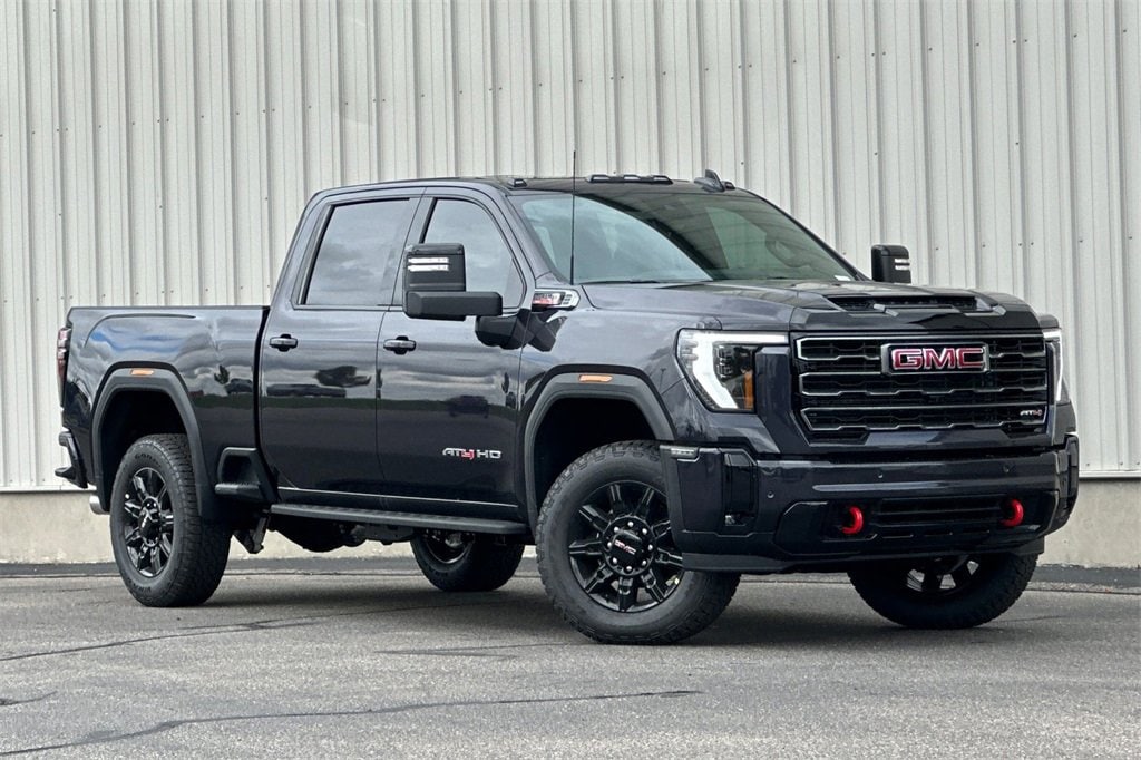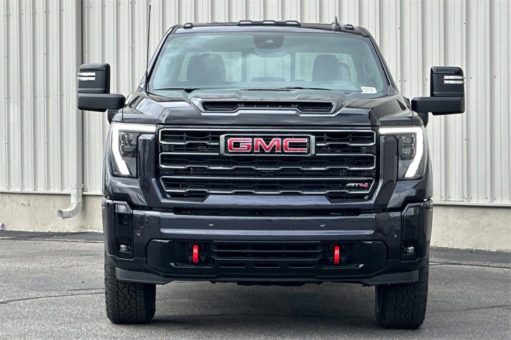 $4,938 off MSRP! 2026 GMC Sierra 2500HD Titanium Rush Metallic AT4 4WD 10-Speed Automatic Duramax 6.6L V8 Turbodiesel 4D Crew Cab 10-Speed Automatic, 4WD, Jet Black With Kalahari Accents Leather, 10-Way Power Driver Seat Adjuster w/Lumbar, 10-Way Power Passenger Seat Adjuster w/Lumbar, 120-Volt Bed Mounted Power Outlet, 120-Volt Instrument Panel Power Outlet, 2 Charge-Only Rear USB Ports, 2 Charge/Data USB Ports Inside Center Console, 2 USB Ports, 2-Speed Active Transfer Case, 220-Amp Alternator, 4-Wheel Disc Brakes, 7 Speakers, ABS brakes, Air Conditioning, Alloy wheels, AM/FM radio: SiriusXM with 360L, Apple CarPlay/Android Auto, AT4 Preferred Package, AT4 Premium Plus Package, Auto High-beam Headlights, Auto-dimming door mirrors, Auto-dimming Rear-View mirror, Automatic Emergency Braking, Automatic temperature control, Bed View Camera w/2 Trailer Camera Provisions, Bose Premium 7-Speaker Sound System, Brake assist, Buckle to Drive, Bumpers: body-color, Compass, Deep-Tinted Glass, Delay-off headlights, Driver door bin, Driver Memory, Driver vanity mirror, Dual front impact airbags, Dual front side impact airbags, Electric Rear-Window Defogger, Electronic Stability Control, Emergency communication system: OnStar, Engine Block Heater, Exhaust Brake, Floor-Mounted Center Console, Following Distance Indicator, Forward Collision Alert, Front anti-roll bar, Front Bucket Seats, Front Center Armrest, Front dual zone A/C, Front fog lights, Front License Plate Kit, Front Pedestrian Braking, Front Prem Floor Liners w/Removable Carpet Insert, Front Rain-Sensing Wipers, Front reading lights, Front wheel independent suspension, Fully automatic headlights, Gloss Black Header Grille & Grille Insert Bars, Gooseneck/5th Wheel Prep Package, HD Surround Vision, Heated 2nd Row Outboard Seats, Heated door mirrors, Heated Driver & Front Outboard Passenger Seats, Heated front seats, Heated rear seats, Heated steering wheel, Heavy-Duty 80 Amp Battery, Hill Descent Control, Hitch Guidance w/Hitch View, Illuminated entry, In-Vehicle Trailering System App, Inside Rearview Auto-Dimming Rear Camera Mirror, IntelliBeam Automatic High Beam On/Off, Keyless Open & Start, Lane Departure Warning System, LED Cargo Area Lighting, LED Smoked Amber Roof Marker Lamps, Low tire pressure warning, Manual Tilt-Wheel/Telescoping Steering Column, Memory seat, Multicolor 15 Diagonal Head-Up Display, Occupant sensing airbag, Off-Road High Clearance Step (LPO), Off-Road Suspension, OnStar Services Capable, Outside temperature display, Overhead airbag, Overhead console, Panic alarm, Passenger door bin, Passenger vanity mirror, Perforated Leather-Appointed Front Seat Trim, Pickup Box, Power door mirrors, Power driver seat, Power Front Passenger Windows w/Express Up/Down, Power passenger seat, Power Sliding Rear Window w/Defogger, Power steering, Power Sunroof, Power windows, Preferred Equipment Group 4SB, Premium audio system: Premium GMC Infotainment System, Push Button Start, Radio: AM/FM w/Premium GMC Infotainment System, Rain sensing wipers, Rear Cross Traffic Alert, Rear Prem Floor Liners w/Removable Carpet Insert, Rear reading lights, Rear seat center armrest, Rear step bumper, Rear Wheelhouse Liners, Rear window defroster, Remote keyless entry, Remote Vehicle Starter System, Safety Alert Seat, Security system, SiriusXM w/360L Trial Subscription, Speed control, Speed-sensing steering, Split folding rear seat, Spray-On Pickup Bedliner w/GMC Logo, Steering Wheel Audio Controls, Steering wheel mounted audio controls, Tachometer, Technology Package, Telescoping steering wheel, Tilt steering wheel, Traction control, Trailer Cam Provisions & Trailer Viewing Software, Trailer Side Blind Zone Alert, Trip computer, Turn signal indicator mirrors, Ultrasonic Front & Rear Park Assist, Unauthorized Entry Theft-Deterrent System, Universal Home Remote, Variably intermittent wipers, Ventilated Driver & Front Price includes: $500 - Buic