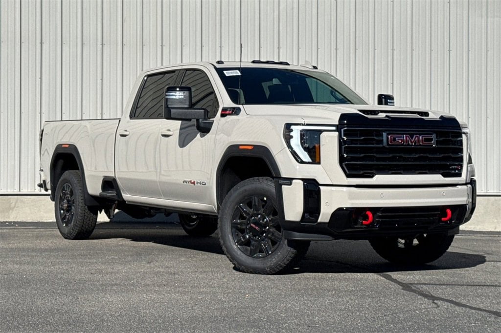 $4,901 off MSRP! 2026 GMC Sierra 3500HD White Sands AT4 4WD 10-Speed Automatic Duramax 6.6L V8 Turbodiesel 4D Crew Cab 10-Speed Automatic, 4WD, Jet Black With Kalahari Accents Leather, 10-Way Power Driver Seat Adjuster w/Lumbar, 10-Way Power Passenger Seat Adjuster w/Lumbar, 120-Volt Bed Mounted Power Outlet, 120-Volt Instrument Panel Power Outlet, 2 Charge-Only Rear USB Ports, 2 Charge/Data USB Ports Inside Center Console, 2 USB Ports, 2-Speed Active Transfer Case, 220 Amp Alternator, 4-Wheel Disc Brakes, 7 Speakers, ABS brakes, Air Conditioning, Alloy wheels, AM/FM radio: SiriusXM with 360L, AT4 Preferred Package, Auto High-beam Headlights, Auto-dimming door mirrors, Auto-dimming Rear-View mirror, Automatic Emergency Braking, Automatic temperature control, Bed View Camera w/2 Trailer Camera Provisions, Bose Premium 7-Speaker Sound System, Brake assist, Buckle to Drive, Bumpers: body-color, Compass, Deep-Tinted Glass, Delay-off headlights, Driver door bin, Driver Memory, Driver vanity mirror, Dual front impact airbags, Dual front side impact airbags, Electric Rear-Window Defogger, Electronic Stability Control, Emergency communication system: OnStar Services capable, Engine Block Heater, Exhaust Brake, Exterior Parking Camera Rear, Floor-Mounted Center Console, Following Distance Indicator, Forward Collision Alert, Front anti-roll bar, Front Bucket Seats, Front Center Armrest, Front dual zone A/C, Front fog lights, Front License Plate Kit, Front Pedestrian Braking, Front Rain-Sensing Wipers, Front reading lights, Front wheel independent suspension, Fully automatic headlights, Gloss Black Header & Grille Insert Bars, GMC Premium 13.4 Diagonal Information Display, Gooseneck/5th Wheel Prep Package, HD Surround Vision, Heated 2nd Row Outboard Seats, Heated door mirrors, Heated Driver & Front Outboard Passenger Seats, Heated front seats, Heated rear seats, Heated steering wheel, Heavy-Duty 80 Amp-Hr Battery, Hill Descent Control, Hitch Guidance w/Hitch View, Illuminated entry, IntelliBeam Automatic High Beam On/Off, Keyless Open & Start, Lane Departure Warning System, LED Cargo Area Lighting, LED Smoked Amber Roof Marker Lamps, Low tire pressure warning, Manual Tilt-Wheel/Telescoping Steering Column, Memory seat, Occupant sensing airbag, Off-Road Suspension, Outside temperature display, Overhead airbag, Overhead console, Panic alarm, Passenger door bin, Passenger vanity mirror, Perforated Front Leather Seat Trim, Pickup Bed, Power door mirrors, Power driver seat, Power Front Windows w/Passenger Express Up/Down, Power passenger seat, Power Sliding Rear Window w/Defogger, Power steering, Power Sunroof, Power windows, Preferred Equipment Group 4SB, Prem Front Floor Liners w/Removable Carpet Insert, Prem Rear Floor Liners w/Removable Carpet Insert, Premium audio system: Premium GMC Infotainment System, Push Button Start, Radio: AM/FM w/Premium GMC Infotainment System, Rain sensing wipers, Rear Cross Traffic Alert, Rear reading lights, Rear seat center armrest, Rear step bumper, Rear Wheelhouse Liners, Rear window defroster, Remote keyless entry, Remote Vehicle Starter System, Safety Alert Seat, Security system, SiriusXM w/360L Trial Subscription, Speed control, Speed-sensing steering, Split folding rear seat, Spray-On Pickup Bedliner w/GMC Logo, Steering Wheel Audio Controls, Steering wheel mounted audio controls, Tachometer, Telescoping steering wheel, Tilt steering wheel, Traction control, Trailer Camera Provisions, Trailer Side Blind Zone Alert, Trip computer, Turn signal indicator mirrors, Ultrasonic Front & Rear Park Assist, Unauthorized Entry Theft-Deterrent System, Universal Home Remote, Variably intermittent wipers, Ventilated Driver & Front Passenger Seats, Ventilated front seats, Voltmeter, Wheels: 20 High Gloss Black 8 Spoke Aluminum, Winter Grille Cover, Wireless Charging, Wireless Phone Projection, X31 Off-Road Package, 10-Speed Automatic, 4WD, Price includes: $500 - Buick