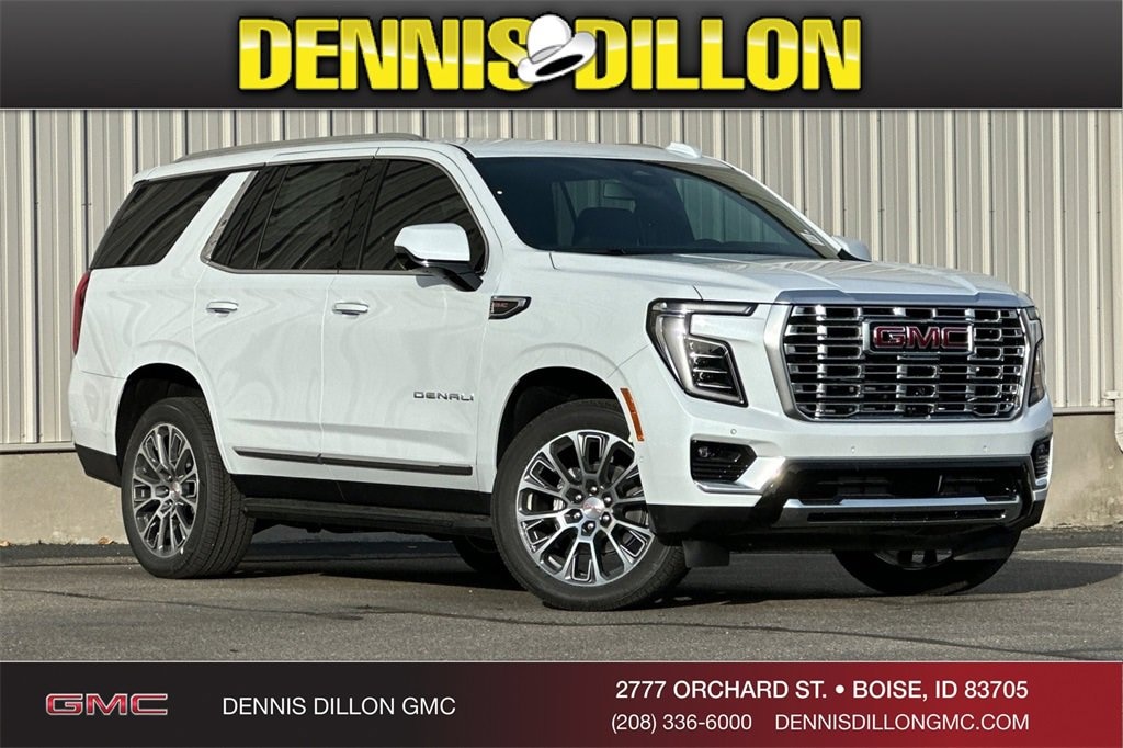 $2,664 off MSRP! 2026 GMC Yukon Glacier White Tricoat Denali 4WD 10-Speed Automatic with Overdrive EcoTec3 6.2L V8 4D Sport Utility 4WD, 10 Speakers, 15 Diagonal Multi-Color Head-Up Display, 3 Years OnStar One (R9M), 3.23 Rear Axle Ratio, 3rd row seats: split-bench, 4-Way Power Driver Lumbar Seat Adjuster, 4-Way Power Front Passenger Lumbar Seat Adjuster, 4-Wheel Disc Brakes, ABS brakes, Adaptive suspension, Air Conditioning, Alloy wheels, AM/FM radio: SiriusXM with 360L, Apple CarPlay/Android Auto, Audio memory, Auto High-beam Headlights, Auto-dimming door mirrors, Auto-dimming Rear-View mirror, Auto-leveling suspension, Automatic temperature control, AutoSense Hands-Free Power Liftgate, Bodyside moldings, Bose 10-Speaker Surround w/CenterPoint, Brake assist, Bright Front & Rear Door Sill Plates, Bumpers: body-color, Compass, Delay-off headlights, Driver door bin, Driver vanity mirror, Dual Exhaust System, Dual front impact airbags, Dual front side impact airbags, Electronic Stability Control, Emergency communication system: OnStar and GMC connected services capable, Engine Block Heater, Exterior Parking Camera Rear, Four wheel independent suspension, Front anti-roll bar, Front Bucket Seats, Front Center Armrest, Front dual zone A/C, Front fog lights, Front reading lights, Fully automatic headlights, Galvano Bodyside Moldings, Garage door transmitter, Heads-Up Display, Heated door mirrors, Heated Driver & Front Passenger Seats, Heated front seats, Heated rear seats, Heated steering wheel, Illuminated entry, License Plate Front Mounting Package, Low tire pressure warning, Magnetic Ride Control Suspension, Memory seat, Navigation system: GMC Connected Navigation, Occupant sensing airbag, Outside temperature display, Overhead airbag, Overhead console, Panic alarm, Passenger door bin, Passenger vanity mirror, Perforated Heated & Ventilated Dr & Frt Pass Seats, Perforated Leather Seating Surfaces, Power door mirrors, Power driver seat, Power Liftgate, Power passenger seat, Power Release 2nd Row Bucket Seats, Power steering, Power Tilt & Telescopic Steering Column, Power windows, Preferred Equipment Group 5SA, Radio: 16.8 Diagonal Premium GMC Infotainment Sys, Rain sensing wipers, Rear air conditioning, Rear anti-roll bar, Rear reading lights, Rear window defroster, Rear window wiper, Remote keyless entry, Security system, SiriusXM w/360L, Speed control, Speed-sensing steering, Split folding rear seat, Spoiler, Steering wheel memory, Steering wheel mounted audio controls, Tachometer, Telescoping steering wheel, Tilt steering wheel, Traction control, Trip computer, Turn signal indicator mirrors, Variably intermittent wipers, Ventilated front seats, Voltmeter, Wheel Locks (Set of 4) (LPO), Wheels: 20 x 9 6-Spoke Polished Aluminum, Wheels: 22 x 9 UItra-Bright Machined, 4WD. Welcome to Dennis Dillon GMC, your trusted destination for a no-hassle, no-haggle car buying experience. At our dealership, we pride ourselves on offering the best upfront prices no surprises, just exceptional value. From the moment you walk through our doors, youâll receive our lowest, most competitive price without the need for negotiation. Weâre committed to providing a straightforward, stress-free experience, so you can drive away feeling confident and satisfied with your purchase!
