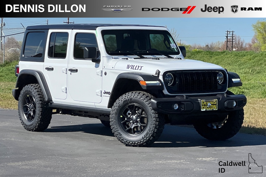 12.3" Touchscreen Display, 2-Door Passive Entry, Front Door Locks, 4-Wheel Disc Brakes, 4-Wheel Drive Swing Gate Decal, 4G LTE Wi-Fi Hot Spot, 7 and 4 Pin Wiring Harness, 8 Speakers, ABS brakes, Advanced Brake Assist, Air Conditioning, Air Conditioning with Auto Temp Control, Air Filtering, AM/FM radio: SiriusXM with 360L, Apple CarPlay, Apple CarPlay/Android Auto, Automatic Headlamps, Aux Battery, Auxiliary Switches, Black 3-Piece Hard Top, Black Grille with Gloss Black Rings, Brake assist, Class II Receiver Hitch, Cluster 7.0" TFT Color Display, Compass, Connectivity - US/Canada, Convenience Group, Conventional Differential Front Axle, Corning Gorilla Glass, Dana M210 Wide HD Tube Front Axle, Dana M220 Wide Rear Axle, Daytime Running Lamps LED Accents, Deep Tint Sunscreen Windows, Delay-off headlights, Driver door bin, Driver vanity mirror, Dual front impact airbags, Dual front side impact airbags, E-Locker Rear Axle, Electronic Stability Control, Emergency/Assistance Call, Enhanced Adaptive Cruise Control, For More Info, Call 800-643-2112, Freedom Panel Storage Bag, Front anti-roll bar, Front Bucket Seats, Front Center Armrest w/Storage, Front fog lights, Front LED Fog Lamps, Front reading lights, Full Speed Forward Collision Warning Plus, Google Android Auto, Heated Front Seats, Heated Steering Wheel, Illuminated entry, Increased Travel Export Tuned Suspension, Injection Molded Black Rear Bumper, Integrated Center Stack Radio, Integrated roll-over protection, LED Premium Reflector Headlamps, Low tire pressure warning, Manufacture Statement of Origin, Mold in Color Bumper with Gloss Black, Molded in Color Rubicon Highline Flare, MOPAR All-Weather Floor Mats, No Soft Top, Non-Lock Fuel Cap Without Discriminator, Normal Duty Suspension, Occupant sensing airbag, Off-Road Plus Mode, Outside temperature display, Overhead airbag, Panic alarm, ParkView Rear Back-Up Camera, Passenger door bin, Passenger vanity mirror, Power Heated Mirrors, Power steering, Power windows, Premium Wrapped Steering Wheel, Quick Order Package 22W Willys, Radio data system, Radio: Uconnect 5 with 12.3" Display, Rear anti-roll bar, Rear reading lights, Rear Window Defroster, Rear Window Wiper/Washer, Remote keyless entry, Security Alarm, SiriusXM Radio Service, SiriusXM with 360L, Speed control, Split folding rear seat, Steering wheel mounted audio controls, Stop-Start Dual Battery System, Sun Visors with Illuminated Vanity Mirrors, Tachometer, Telescoping steering wheel, Tilt steering wheel, Traction control, Trip computer, Universal Garage Door Opener, Variably intermittent wipers, Wheels: 17" x 7.5" Black Steel Styled, Wheels: 17" x 7.5" Painted Black, Willys Hood Decal. CARS COST LESS IN CALDWELL!!! Price includes: $1000 - 2026 National Retail Bonus Cash . Exp. 04/30/2026