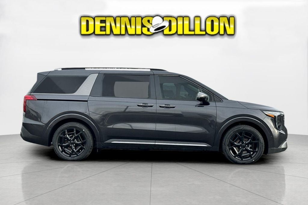 Panthera Metal 2025 Kia Carnival SX FWD 8-Speed Automatic V6 3.51 Axle Ratio, 3rd row seats: split-bench, 4-Wheel Disc Brakes, 8 Speakers, ABS brakes, Air Conditioning, Alloy wheels, AM/FM radio: SiriusXM, Apple CarPlay & Android Auto, Artificial Leather Seat Trim, Auto High-beam Headlights, Automatic temperature control, Brake assist, Bumpers: body-color, Carpeted Floor Mats (8-Passenger), Compass, Dark Edition Front Grille Trim, Dark Edition Mirror Caps, Delay-off headlights, Driver door bin, Driver vanity mirror, Dual front impact airbags, Dual front side impact airbags, EC Mirror w/HomeLink, Electronic Stability Control, Emergency communication system, Exterior Parking Camera Rear, Four wheel independent suspension, Front anti-roll bar, Front Bucket Seats, Front Center Armrest, Front dual zone A/C, Front fog lights, Front reading lights, Fully automatic headlights, Heated & Ventilated Front Bucket Seats, Heated door mirrors, Heated front seats, Illuminated entry, Knee airbag, Leather Shift Knob, Leather steering wheel, Low tire pressure warning, Memory seat, Navigation system: AVN 5.0 Navigation System, Occupant sensing airbag, Outside temperature display, Overhead airbag, Overhead console, Panic alarm, Passenger door bin, Passenger vanity mirror, Power 2nd-Row Moonroof, Power door mirrors, Power driver seat, Power Liftgate, Power moonroof, Power passenger seat, Power steering, Power windows, Radio: AM/FM/HD Audio System, Rain sensing wipers, Rear air conditioning, Rear anti-roll bar, Rear reading lights, Rear window defroster, Rear window wiper, Reclining 3rd row seat, Remote keyless entry, Security system, Speed control, Speed-sensing steering, Split folding rear seat, Spoiler, Steering wheel mounted audio controls, SX Dark Edition Package, Tachometer, Telescoping steering wheel, Tilt steering wheel, Traction control, Trailer Prewire Harness, Trip computer, Turn signal indicator mirrors, Variably intermittent wipers, Ventilated front seats, Wheel Locks, Wheels: 7.5J x 19" Alloy, Wheels: 7.5J x 19" Alloy Dark Edition.