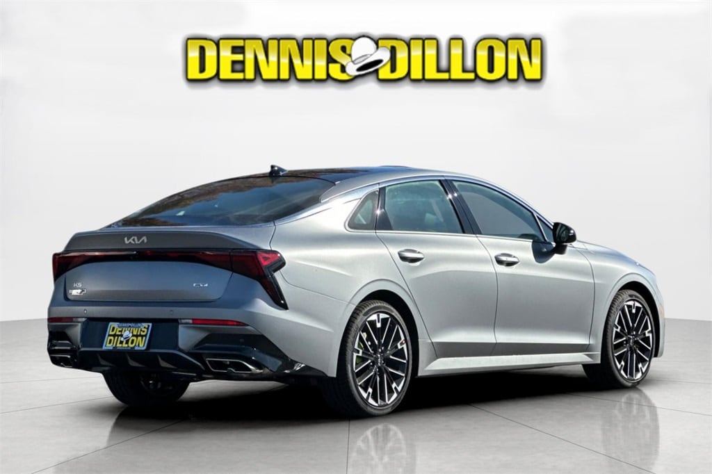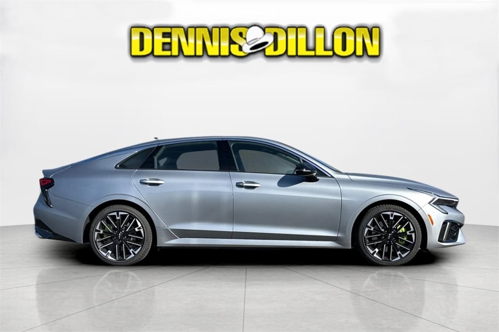 Steel Matte Gray 2026 Kia K5 GT FWD 8-Speed DCT I4 4-Wheel Disc Brakes, 6 Speakers, ABS brakes, Air Conditioning, Alloy wheels, AM/FM radio: SiriusXM, Auto High-beam Headlights, Automatic temperature control, Brake assist, Bumpers: body-color, Carpeted Floor Mats, Delay-off headlights, Driver door bin, Driver vanity mirror, Dual front impact airbags, Dual front side impact airbags, Electronic Stability Control, Emergency communication system: Kia Connect (includes 1 year free trial), Four wheel independent suspension, Front anti-roll bar, Front Bucket Seats, Front Center Armrest, Front dual zone A/C, Front fog lights, Front reading lights, Fully automatic headlights, Heated door mirrors, Heated front seats, Heated Sport Bucket Seats, Illuminated entry, Knee airbag, Leather Shift Knob, Leather steering wheel, Low tire pressure warning, Navigation System, Occupant sensing airbag, Outside temperature display, Overhead airbag, Overhead console, Panic alarm, Passenger door bin, Passenger vanity mirror, Power door mirrors, Power driver seat, Power moonroof, Power steering, Power windows, Radio data system, Radio: AM/FM Audio System, Rear anti-roll bar, Rear reading lights, Rear seat center armrest, Rear side impact airbag, Rear window defroster, Remote keyless entry, Security system, Speed control, Speed-sensing steering, Split folding rear seat, Sport steering wheel, Steering wheel mounted audio controls, SynTex Seat Trim, Tachometer, Telescoping steering wheel, Tilt steering wheel, Traction control, Trip computer, Turn signal indicator mirrors, Variably intermittent wipers, Wheels: 19" x 8.0J Gloss Black Machined Finish Alloy.