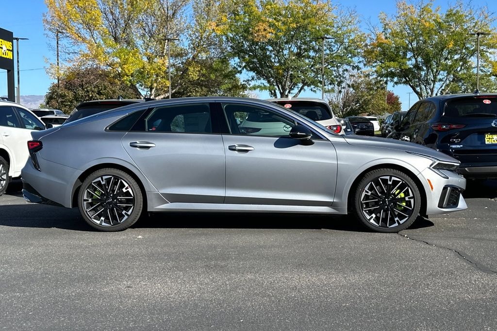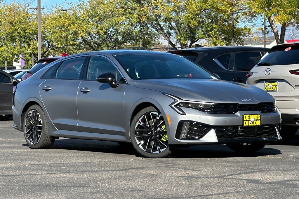 Steel Matte Gray 2026 Kia K5 GT FWD 8-Speed DCT I4 4-Wheel Disc Brakes, 6 Speakers, ABS brakes, Air Conditioning, Alloy wheels, AM/FM radio: SiriusXM, Auto High-beam Headlights, Automatic temperature control, Brake assist, Bumpers: body-color, Carpeted Floor Mats, Delay-off headlights, Driver door bin, Driver vanity mirror, Dual front impact airbags, Dual front side impact airbags, Electronic Stability Control, Emergency communication system: Kia Connect (includes 1 year free trial), Four wheel independent suspension, Front anti-roll bar, Front Bucket Seats, Front Center Armrest, Front dual zone A/C, Front fog lights, Front reading lights, Fully automatic headlights, Heated door mirrors, Heated front seats, Heated Sport Bucket Seats, Illuminated entry, Knee airbag, Leather Shift Knob, Leather steering wheel, Low tire pressure warning, Navigation System, Occupant sensing airbag, Outside temperature display, Overhead airbag, Overhead console, Panic alarm, Passenger door bin, Passenger vanity mirror, Power door mirrors, Power driver seat, Power moonroof, Power steering, Power windows, Radio data system, Radio: AM/FM Audio System, Rear anti-roll bar, Rear reading lights, Rear seat center armrest, Rear side impact airbag, Rear window defroster, Remote keyless entry, Security system, Speed control, Speed-sensing steering, Split folding rear seat, Sport steering wheel, Steering wheel mounted audio controls, SynTex Seat Trim, Tachometer, Telescoping steering wheel, Tilt steering wheel, Traction control, Trip computer, Turn signal indicator mirrors, Variably intermittent wipers, Wheels: 19" x 8.0J Gloss Black Machined Finish Alloy.