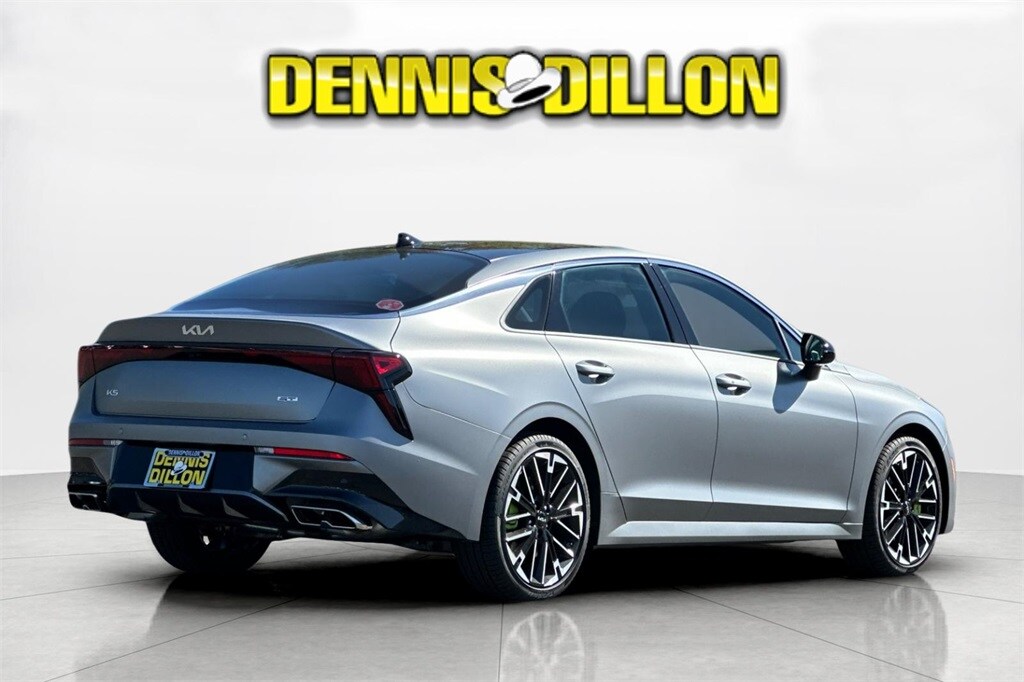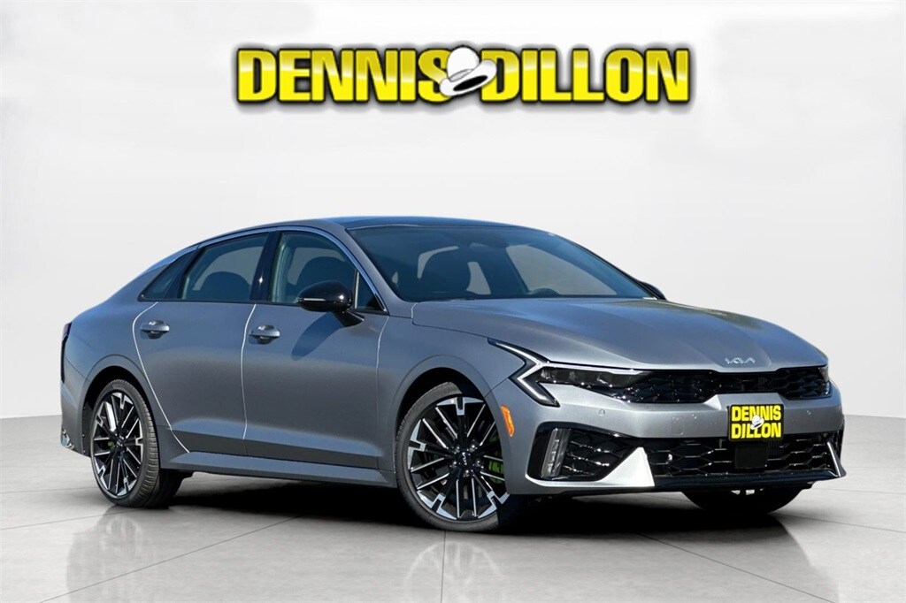 Steel Matte Gray 2026 Kia K5 GT FWD 8-Speed DCT I4 4-Wheel Disc Brakes, 6 Speakers, ABS brakes, Air Conditioning, Alloy wheels, AM/FM radio: SiriusXM, Auto High-beam Headlights, Automatic temperature control, Brake assist, Bumpers: body-color, Carpeted Floor Mats, Delay-off headlights, Driver door bin, Driver vanity mirror, Dual front impact airbags, Dual front side impact airbags, Electronic Stability Control, Emergency communication system: Kia Connect (includes 1 year free trial), Four wheel independent suspension, Front anti-roll bar, Front Bucket Seats, Front Center Armrest, Front dual zone A/C, Front fog lights, Front reading lights, Fully automatic headlights, Heated door mirrors, Heated front seats, Heated Sport Bucket Seats, Illuminated entry, Knee airbag, Leather Shift Knob, Leather steering wheel, Low tire pressure warning, Navigation System, Occupant sensing airbag, Outside temperature display, Overhead airbag, Overhead console, Panic alarm, Passenger door bin, Passenger vanity mirror, Power door mirrors, Power driver seat, Power moonroof, Power steering, Power windows, Radio data system, Radio: AM/FM Audio System, Rear anti-roll bar, Rear reading lights, Rear seat center armrest, Rear side impact airbag, Rear window defroster, Remote keyless entry, Security system, Speed control, Speed-sensing steering, Split folding rear seat, Sport steering wheel, Steering wheel mounted audio controls, SynTex Seat Trim, Tachometer, Telescoping steering wheel, Tilt steering wheel, Traction control, Trip computer, Turn signal indicator mirrors, Variably intermittent wipers, Wheels: 19" x 8.0J Gloss Black Machined Finish Alloy.