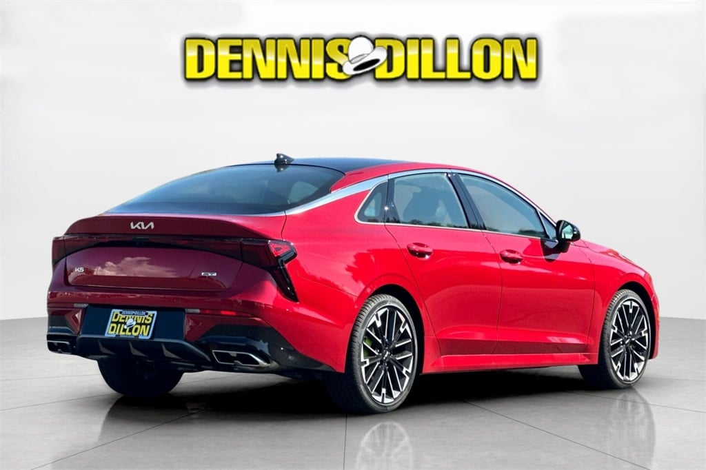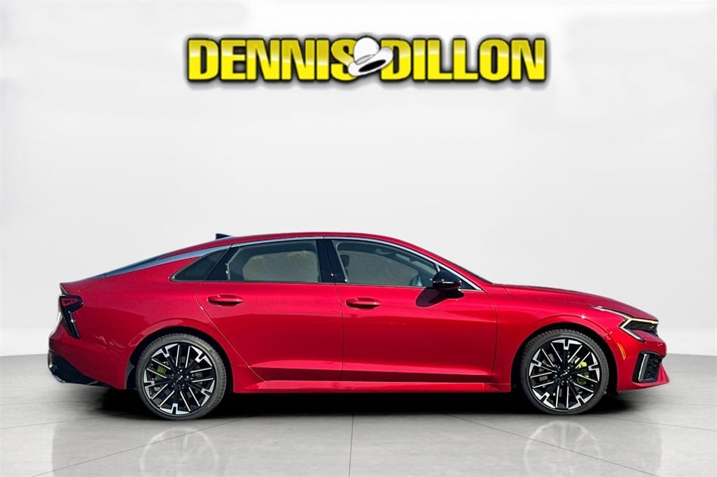 Runway Red 2026 Kia K5 GT FWD 8-Speed DCT I4 4-Wheel Disc Brakes, 6 Speakers, ABS brakes, Air Conditioning, Alloy wheels, AM/FM radio: SiriusXM, Auto High-beam Headlights, Automatic temperature control, Brake assist, Bumpers: body-color, Carpeted Floor Mats, Delay-off headlights, Driver door bin, Driver vanity mirror, Dual front impact airbags, Dual front side impact airbags, Electronic Stability Control, Emergency communication system: Kia Connect (includes 1 year free trial), Four wheel independent suspension, Front anti-roll bar, Front Bucket Seats, Front Center Armrest, Front dual zone A/C, Front fog lights, Front reading lights, Fully automatic headlights, Heated door mirrors, Heated front seats, Heated Sport Bucket Seats, Illuminated entry, Knee airbag, Leather Shift Knob, Leather steering wheel, Low tire pressure warning, Navigation System, Occupant sensing airbag, Outside temperature display, Overhead airbag, Overhead console, Panic alarm, Passenger door bin, Passenger vanity mirror, Power door mirrors, Power driver seat, Power moonroof, Power steering, Power windows, Radio data system, Radio: AM/FM Audio System, Rear anti-roll bar, Rear reading lights, Rear seat center armrest, Rear side impact airbag, Rear window defroster, Remote keyless entry, Security system, Speed control, Speed-sensing steering, Split folding rear seat, Sport steering wheel, Steering wheel mounted audio controls, SynTex Seat Trim, Tachometer, Telescoping steering wheel, Tilt steering wheel, Traction control, Trip computer, Turn signal indicator mirrors, Variably intermittent wipers, Wheels: 19" x 8.0J Gloss Black Machined Finish Alloy.