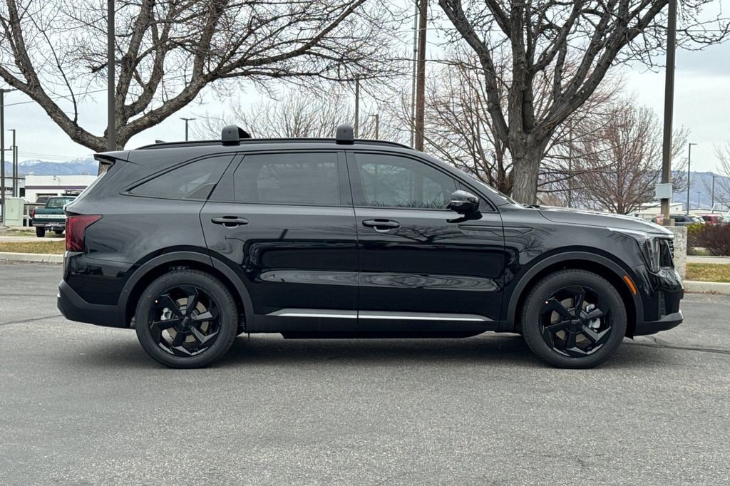 Aurora Black Pearl 2026 Kia Sorento Hybrid X-Line SX Prestige AWD 6-Speed Automatic 1.6L Turbo GDI 4-Cylinder 12 Speakers, 3rd row seats: split-bench, 4-Wheel Disc Brakes, ABS brakes, Air Conditioning, Alloy wheels, AM/FM radio: SiriusXM, Apple CarPlay & Android Auto, Auto High-beam Headlights, Auto-dimming Rear-View mirror, Automatic temperature control, Brake assist, Bumpers: body-color, Carpeted Floor Mats, Cross Bars, Delay-off headlights, Driver door bin, Driver vanity mirror, Dual front impact airbags, Dual front side impact airbags, Electronic Stability Control, Emergency communication system: 911 Connect, Exterior Parking Camera Rear, Four wheel independent suspension, Front anti-roll bar, Front Bucket Seats, Front Center Armrest, Front dual zone A/C, Front fog lights, Front reading lights, Fully automatic headlights, Garage door transmitter: HomeLink, Heated and Ventilated Front Bucket Seats, Heated door mirrors, Heated front seats, Heated rear seats, Heated steering wheel, Illuminated entry, Knee airbag, Leather steering wheel, Low tire pressure warning, Memory seat, Navigation System, Occupant sensing airbag, Outside temperature display, Overhead airbag, Overhead console, Panic alarm, Passenger door bin, Passenger vanity mirror, Perforated Genuine Leather Seat Trim, Power door mirrors, Power driver seat, Power Liftgate, Power moonroof, Power passenger seat, Power steering, Power windows, Radio data system, Radio: AM/FM/SiriusXM Audio System, Rain sensing wipers, Rear anti-roll bar, Rear reading lights, Rear side impact airbag, Rear window defroster, Rear window wiper, Remote keyless entry, Security system, Speed control, Speed-sensing steering, Split folding rear seat, Spoiler, Steering wheel mounted audio controls, Tachometer, Telescoping steering wheel, Tilt steering wheel, Traction control, Trip computer, Turn signal indicator mirrors, Variably intermittent wipers, Ventilated front seats, Wheels: 19" x 7.5J Machine-Finished Aero-Alloy.