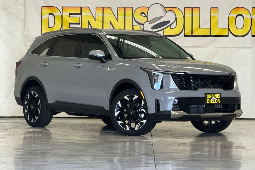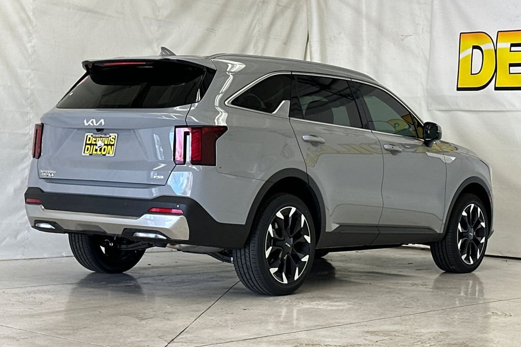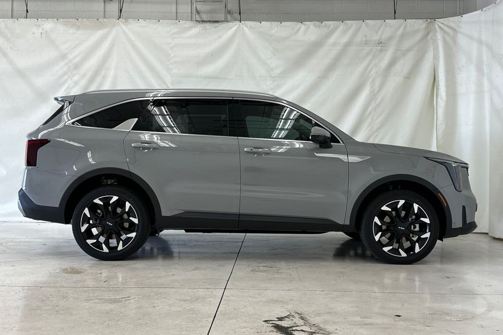 Wolf Gray 2026 Kia Sorento EX AWD 8 Speed Dual Clutch 2.5L I4 DGI Turbocharged DOHC 16V LEV3-SULEV30 281hp 3rd row seats: split-bench, 4-Wheel Disc Brakes, 6 Speakers, ABS brakes, Air Conditioning, Alloy wheels, AM/FM radio: SiriusXM, Apple CarPlay & Android Auto, Auto High-beam Headlights, Auto-dimming Rear-View mirror, Automatic temperature control, Brake assist, Bumpers: body-color, Carpeted Floor Mats, Delay-off headlights, Driver door bin, Driver vanity mirror, Dual front impact airbags, Dual front side impact airbags, Electronic Stability Control, Emergency communication system: 911 Connect, Exterior Parking Camera Rear, Four wheel independent suspension, Front anti-roll bar, Front Bucket Seats, Front Center Armrest, Front dual zone A/C, Front fog lights, Front reading lights, Fully automatic headlights, Heated door mirrors, Heated Front Bucket Seats, Heated front seats, Illuminated entry, Knee airbag, Leather Shift Knob, Leather steering wheel, Low tire pressure warning, Navigation System, Occupant sensing airbag, Outside temperature display, Overhead airbag, Overhead console, Panic alarm, Passenger door bin, Passenger vanity mirror, Power door mirrors, Power driver seat, Power Liftgate, Power passenger seat, Power steering, Power windows, Radio data system, Radio: AM/FM Standard Sound System, Rear anti-roll bar, Rear reading lights, Rear seat center armrest, Rear side impact airbag, Rear window defroster, Rear window wiper, Remote keyless entry, Security system, Speed control, Speed-sensing steering, Split folding rear seat, Spoiler, Steering wheel mounted audio controls, SynTex Artificial Leather Seat Trim, Tachometer, Telescoping steering wheel, Tilt steering wheel, Traction control, Trip computer, Turn signal indicator mirrors, Variably intermittent wipers, Wheels: 20" Machine-Finished Gloss Black Alloy.
