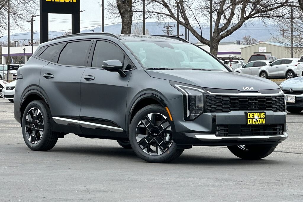 Shadow Matte Gray 2026 Kia Sportage Hybrid SX-Prestige AWD 6-Speed Automatic 1.6L Turbo GDI 4-Cylinder 4-Wheel Disc Brakes, 8 Speakers, ABS brakes, Air Conditioning, All Weather Floor Mats, Alloy wheels, AM/FM radio: SiriusXM, Auto High-beam Headlights, Auto-Dimming Mirror with HomeLink, Automatic temperature control, Brake assist, Bumpers: body-color, Compass, Delay-off headlights, Driver door bin, Driver vanity mirror, Dual front impact airbags, Dual front side impact airbags, Electronic Stability Control, Emergency communication system, Four wheel independent suspension, Front anti-roll bar, Front Bucket Seats, Front Center Armrest, Front dual zone A/C, Front fog lights, Front reading lights, Fully automatic headlights, harman/kardon® Speakers, Heated and Ventilated Front Bucket Seats, Heated door mirrors, Heated front seats, Heated steering wheel, Illuminated entry, Leather steering wheel, Low tire pressure warning, Memory seat, Mud Guards, Navigation System, Occupant sensing airbag, Outside temperature display, Overhead airbag, Overhead console, Panic alarm, Passenger door bin, Passenger vanity mirror, Power door mirrors, Power driver seat, Power Liftgate, Power moonroof, Power passenger seat, Power steering, Power windows, Radio: AM/FM/HD Premium Audio System, Rain sensing wipers, Rear anti-roll bar, Rear reading lights, Rear seat center armrest, Rear side impact airbag, Rear window defroster, Rear window wiper, Remote keyless entry, Security system, Small First Aid Kit, Speed control, Speed-sensing steering, Split folding rear seat, Spoiler, Steering wheel mounted audio controls, Syntex Premium Leatherette Seat Trim, Tachometer, Telescoping steering wheel, Tilt steering wheel, Traction control, Trip computer, Turn signal indicator mirrors, Variably intermittent wipers, Ventilated front seats, Wheels: 19" x 7.5J Alloy.