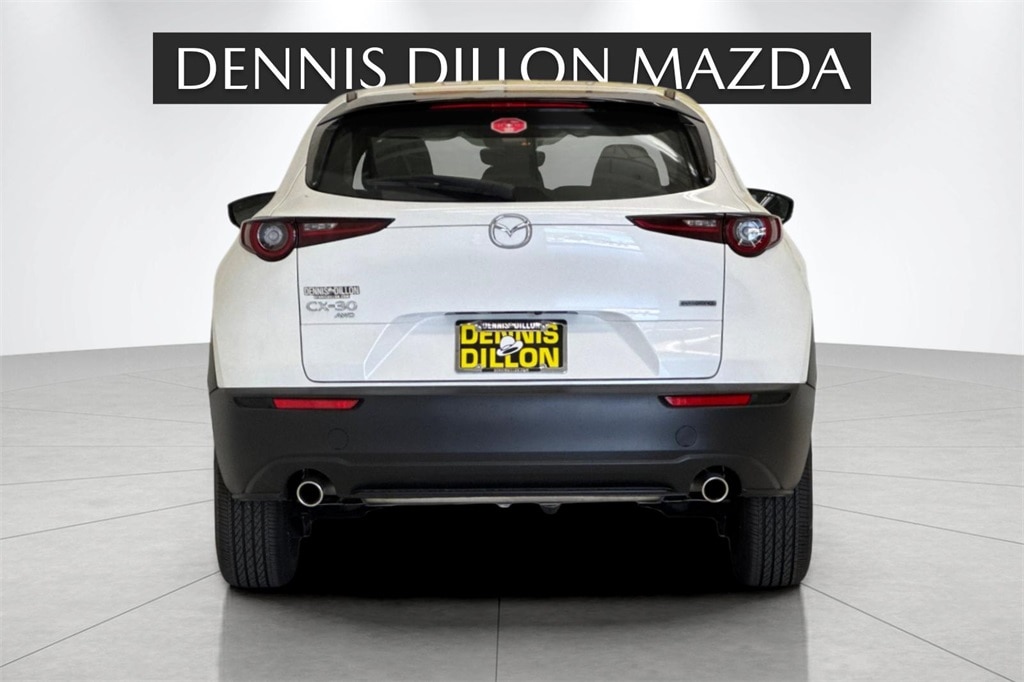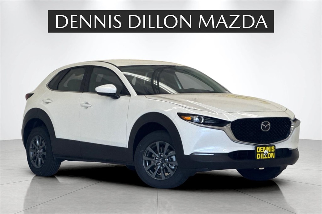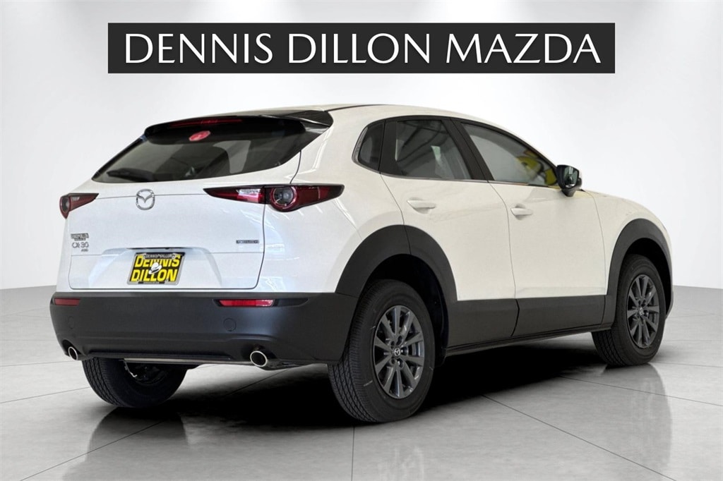 Snowflake White Pearl Mica 2025 Mazda CX-30 2.5 S AWD 6-Speed Automatic SKYACTIV® 2.5L 4-Cylinder DOHC 16V 16 x 6.5J Aluminum Alloy Wheels, 4-Wheel Disc Brakes, 6 Speakers, ABS brakes, Air Conditioning, Alloy wheels, AM/FM radio, AppLink/Apple CarPlay and Android Auto, Auto High-beam Headlights, Brake assist, Bumpers: body-color, Cargo Tray, Cloth Seat Trim, Compass, Delay-off headlights, Driver door bin, Driver vanity mirror, Dual front impact airbags, Dual front side impact airbags, Electronic Stability Control, Emergency communication system: Mazda Connected Services (3-year trial subscription included), Exterior Parking Camera Rear, Front anti-roll bar, Front Bucket Seats, Front Center Armrest, Front reading lights, Front wheel independent suspension, Fully automatic headlights, High Wall All-Weather Floor Mats, Illuminated entry, Knee airbag, Low tire pressure warning, MAZDA CONNECT Infotainment System, Occupant sensing airbag, Outside temperature display, Overhead airbag, Overhead console, Panic alarm, Passenger door bin, Passenger vanity mirror, Power door mirrors, Power steering, Power windows, Radio data system, Radio: AM/FM Audio System, Rear side impact airbag, Rear window defroster, Rear window wiper, Remote keyless entry, Snowflake White Pearl Mica Paint Charge, Speed control, Speed-sensing steering, Split folding rear seat, Spoiler, Steering wheel mounted audio controls, Tachometer, Telescoping steering wheel, Tilt steering wheel, Traction control, Trip computer, Variably intermittent wipers, Wheel Locks.