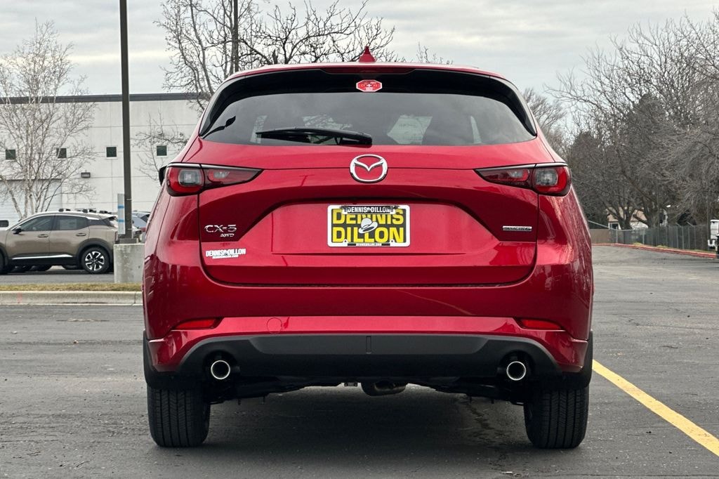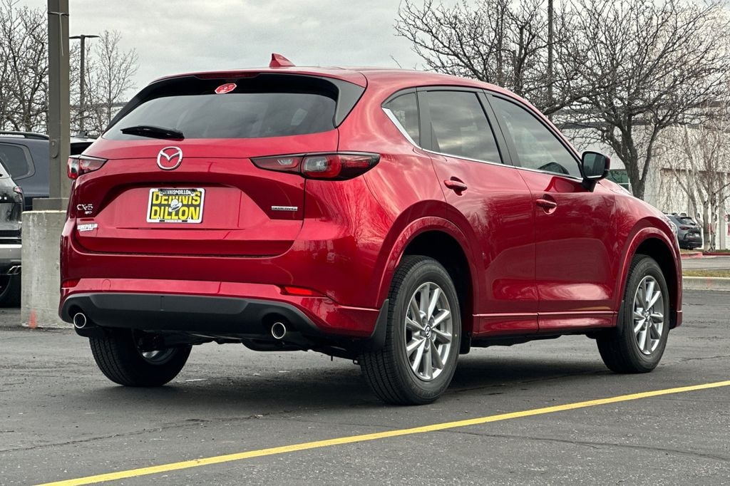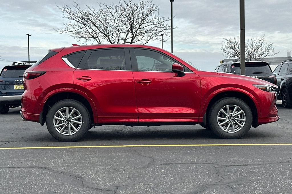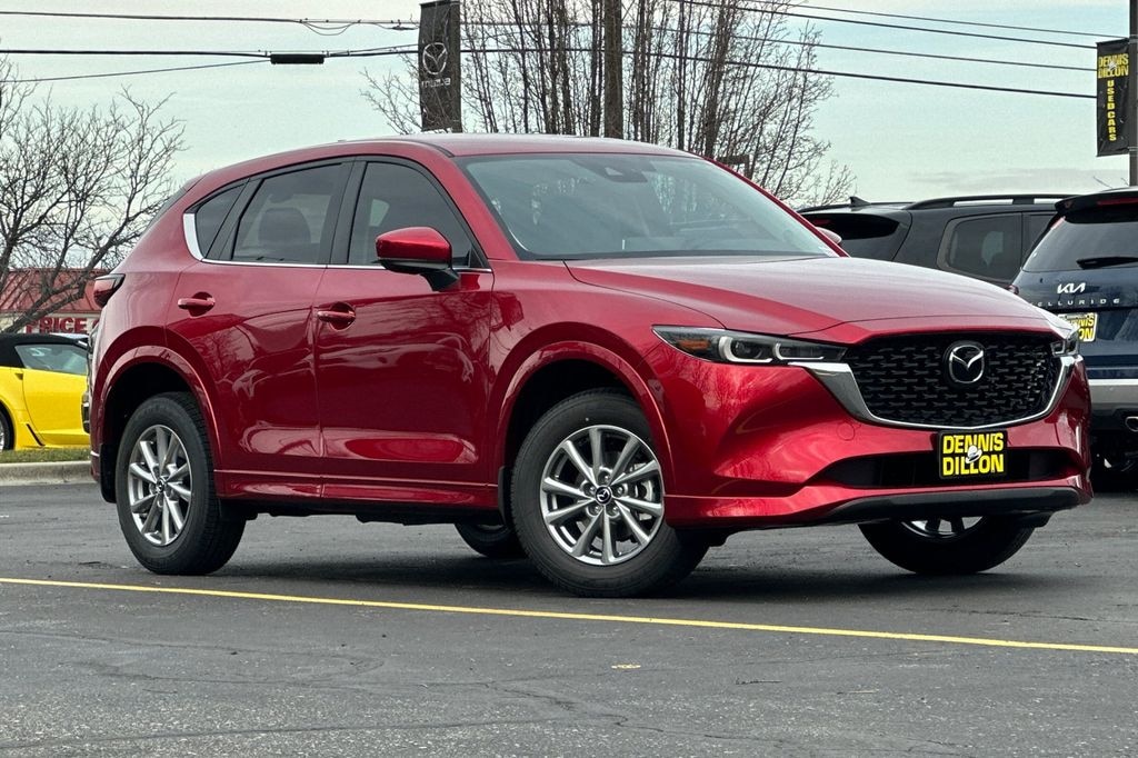 Soul Red Crystal Metallic 2025 Mazda CX-5 2.5 S Select Package AWD 6-Speed Automatic SKYACTIV® 2.5L 4-Cylinder DOHC 16V 4-Wheel Disc Brakes, 6 Speakers, ABS brakes, Air Conditioning, Alloy wheels, AM/FM radio, AppLink/Apple CarPlay and Android Auto, Auto High-beam Headlights, Automatic temperature control, Brake assist, Bumpers: body-color, Cargo Storage Shelf, Delay-off headlights, Driver door bin, Driver vanity mirror, Dual front impact airbags, Dual front side impact airbags, E911 Automatic Emergency Notification, Electronic Stability Control, Emergency communication system: MAZDA CONNECT, Exterior Parking Camera Rear, Four wheel independent suspension, Front & Rear Splash Guards, Front anti-roll bar, Front Bucket Seats, Front Center Armrest w/Storage, Front dual zone A/C, Front reading lights, Fully automatic headlights, Heated Front Bucket Seats, Heated front seats, Illuminated entry, Infotainment System Voice Command, Leather Shift Knob, Leather steering wheel, Leatherette Seat Trim, Low tire pressure warning, Multifunction Commander Control, Occupant sensing airbag, Outside temperature display, Overhead airbag, Overhead console, Pandora, Panic alarm, Passenger door bin, Passenger vanity mirror, Power door mirrors, Power driver seat, Power steering, Power windows, Radio Broadcast Data System Program Information, Radio data system, Radio: AM/FM/HD Audio System, Rain sensing wipers, Rear anti-roll bar, Rear reading lights, Rear seat center armrest, Rear window defroster, Rear window wiper, Remote keyless entry, SMS Text Msg Audio Delivery & Reply, Soul Red Crystal Metallic Paint, Speed control, Speed-sensing steering, Split folding rear seat, Spoiler, Steering wheel mounted audio controls, Tachometer, Telescoping steering wheel, Tilt steering wheel, Traction control, Trip computer, Turn signal indicator mirrors, Variably intermittent wipers, Wheel Locks, Wheels: 17 x 7J Aluminum Alloy.