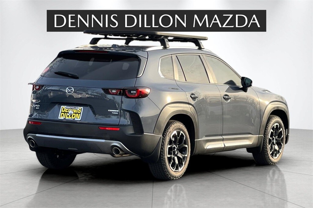 Polymetal Gray Metallic 2025 Mazda CX-50 2.5 Turbo Meridian Edition AWD 6-Speed Automatic 2.5L I4 Turbocharged DOHC 16V LEV3-ULEV70 227hp 12 Speakers, 4-Wheel Disc Brakes, ABS brakes, Air Conditioning, Alloy wheels, AM/FM radio: SiriusXM, Apex Package, AppLink/Apple CarPlay and Android Auto, Auto High-beam Headlights, Auto-dimming Rear-View mirror, Automatic temperature control, Brake assist, Bumpers: body-color, Carpet Cargo Mat, Compass, Delay-off headlights, Driver door bin, Driver vanity mirror, Dual front impact airbags, Dual front side impact airbags, Electronic Stability Control, Emergency communication system: MAZDA CONNECT, Exterior Parking Camera Rear, Front and Rear Splash Guards, Front anti-roll bar, Front Bucket Seats, Front Center Armrest, Front dual zone A/C, Front reading lights, Front wheel independent suspension, Fully automatic headlights, Garage door transmitter: HomeLink, Heated and Ventilated Front Seats with 3 Level Adjustment, Heated door mirrors, Heated front seats, Heated rear seats, Heated steering wheel, Illuminated entry, Knee airbag, Leather Seat Trim, Leather Shift Knob, Leather steering wheel, Low tire pressure warning, Memory seat, Navigation system: MAZDA CONNECT, Occupant sensing airbag, Outside temperature display, Overhead airbag, Overhead console, Panic alarm, Passenger door bin, Passenger vanity mirror, Polymetal Gray Metallic Paint Charge, Power door mirrors, Power driver seat, Power Liftgate, Power moonroof, Power passenger seat, Power steering, Power windows, Radio data system, Radio: AM/FM/HD Bose 12-Speaker Audio Sound System and Navigation, Rain sensing wipers, Rear seat center armrest, Rear window defroster, Rear window wiper, Remote keyless entry, Speed control, Speed-sensing steering, Split folding rear seat, Spoiler, Steering wheel mounted audio controls, Tachometer, Telescoping steering wheel, Tilt steering wheel, Traction control, Trip computer, Turn signal indicator mirrors, Variably intermittent wipers, Ventilated front seats, Wheels: 18 x 8J Aluminum Alloy Black Metallic.