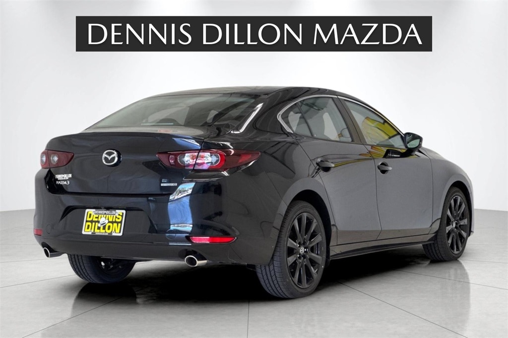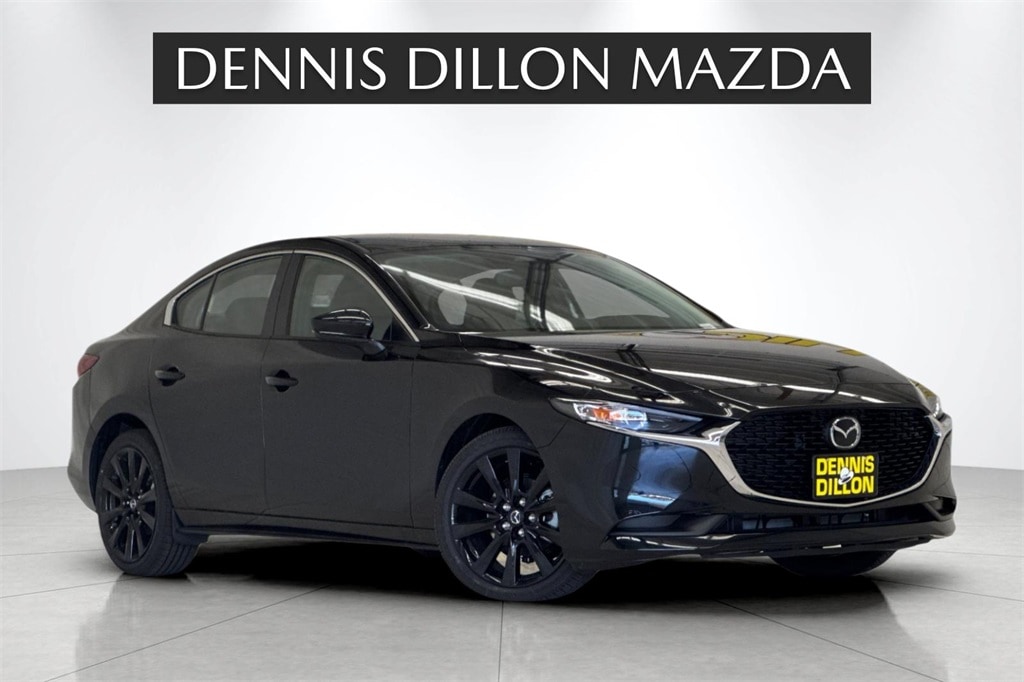 Jet Black Mica 2025 Mazda Mazda3 2.5 S Select Sport FWD 6-Speed Automatic 2.5L I4 DOHC 16V LEV3-SULEV30 191hp 4-Wheel Disc Brakes, 6 Speakers, ABS brakes, Air Conditioning, Alloy wheels, AM/FM radio, AppLink/Apple CarPlay and Android Auto, Auto High-beam Headlights, Automatic temperature control, Brake assist, Bumpers: body-color, Compass, Delay-off headlights, Driver door bin, Driver vanity mirror, Dual front impact airbags, Dual front side impact airbags, Electronic Stability Control, Emergency communication system: Mazda Connected Services (1-year complimentary trial included), Exterior Parking Camera Rear, Front anti-roll bar, Front Bucket Seats, Front Center Armrest, Front dual zone A/C, Front reading lights, Front Sport Bucket Seats, Front wheel independent suspension, Fully automatic headlights, Heated door mirrors, Illuminated entry, Jet Black Rear Lip Spoiler (RJC), Knee airbag, Leather Shift Knob, Leather steering wheel, Leatherette Seat Trim, Low tire pressure warning, MAZDA CONNECT Infotainment System, Occupant sensing airbag, Outside temperature display, Overhead airbag, Overhead console, Panic alarm, Passenger door bin, Passenger vanity mirror, Power door mirrors, Power steering, Power windows, Radio data system, Radio: AM/FM Audio System, Rain sensing wipers, Rear seat center armrest, Rear side impact airbag, Rear window defroster, Remote keyless entry, Speed control, Speed-sensing steering, Split folding rear seat, Steering wheel mounted audio controls, Tachometer, Telescoping steering wheel, Tilt steering wheel, Traction control, Trip computer, Turn signal indicator mirrors, Variably intermittent wipers, Wheels: 18 x 7J Aluminum Alloy.