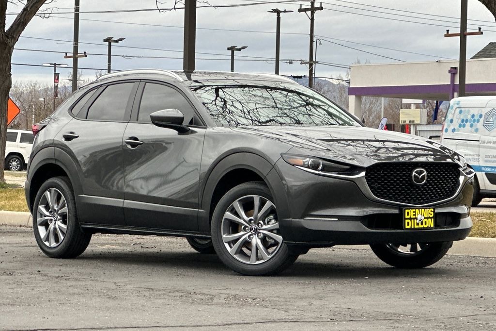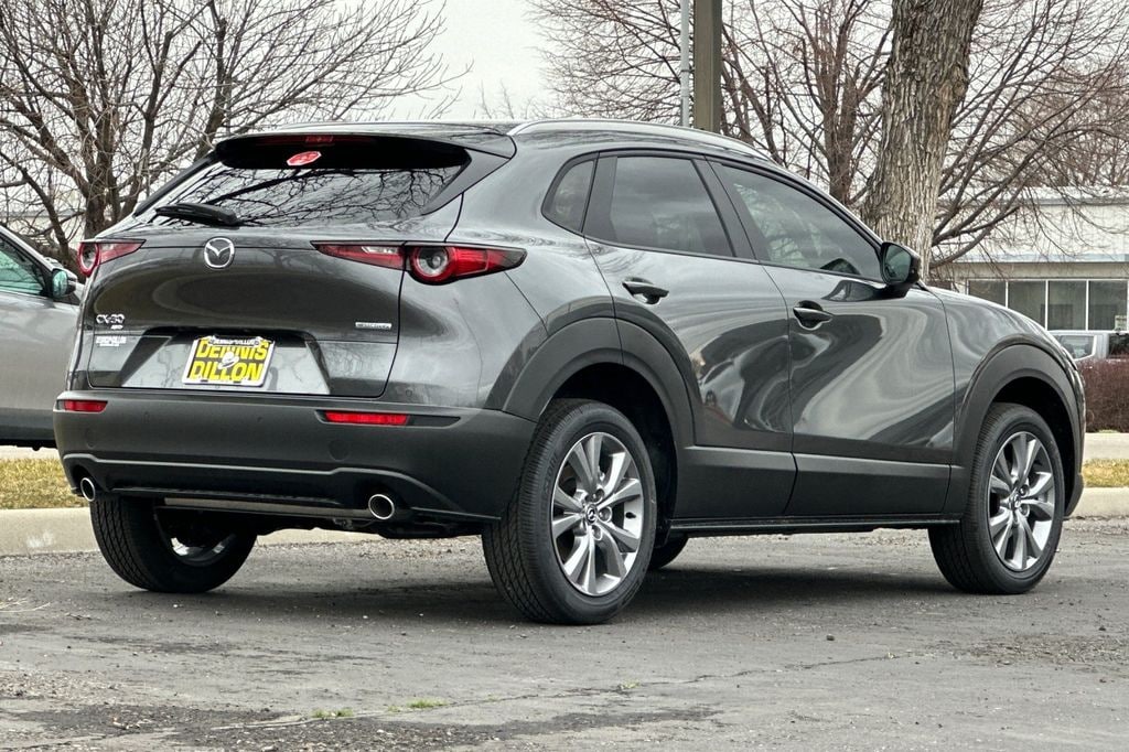 Machine Gray Metallic 2026 Mazda CX-30 2.5 S Premium AWD 6-Speed Automatic SKYACTIV®-G 2.5L 4-Cylinder DOHC 16V 12 Speakers, 4-Wheel Disc Brakes, ABS brakes, Air Conditioning, Alloy wheels, AM/FM radio, AppLink/Apple CarPlay and Android Auto, Auto High-beam Headlights, Auto-dimming Rear-View mirror, Automatic temperature control, Brake assist, Bumpers: body-color, Compass, Delay-off headlights, Driver door bin, Driver vanity mirror, Dual front impact airbags, Dual front side impact airbags, Electronic Stability Control, Emergency communication system: MAZDA CONNECT, Exterior Parking Camera Rear, Front anti-roll bar, Front Bucket Seats, Front Center Armrest, Front dual zone A/C, Front reading lights, Front wheel independent suspension, Fully automatic headlights, Garage door transmitter: HomeLink, Heads-Up Display, Heated door mirrors, Heated Front Bucket Seats, Heated front seats, Heated steering wheel, Illuminated entry, Knee airbag, Leather Seat Trim, Leather Shift Knob, Leather steering wheel, Low tire pressure warning, Machine Gray Metallic Paint Charge, MAZDA CONNECT Infotainment System, Memory seat, Occupant sensing airbag, Outside temperature display, Overhead airbag, Overhead console, Panic alarm, Passenger door bin, Passenger vanity mirror, Power door mirrors, Power driver seat, Power Liftgate, Power moonroof, Power steering, Power windows, Radio data system, Radio: AM/FM/HD Audio System, Rain sensing wipers, Rear seat center armrest, Rear side impact airbag, Rear window defroster, Rear window wiper, Remote keyless entry, Speed control, Speed-sensing steering, Split folding rear seat, Spoiler, Steering wheel mounted audio controls, Tachometer, Telescoping steering wheel, Tilt steering wheel, Traction control, Trip computer, Turn signal indicator mirrors, Variably intermittent wipers, Wheel Locks, Wheels: 18 x 7J Aluminum Alloy.