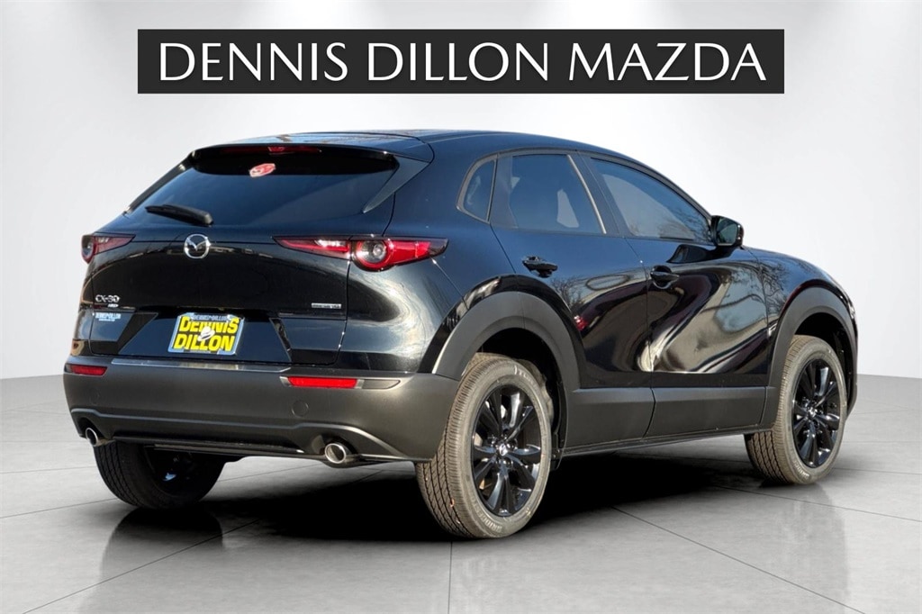 Jet Black Mica 2026 Mazda CX-30 2.5 S Select Sport AWD 6-Speed Automatic SKYACTIV® 2.5L 4-Cylinder DOHC 16V 4-Wheel Disc Brakes, 8 Speakers, ABS brakes, Air Conditioning, Alloy wheels, AM/FM radio, AppLink/Apple CarPlay and Android Auto, Auto High-beam Headlights, Automatic temperature control, Brake assist, Bumpers: body-color, Cargo Tray, Compass, Delay-off headlights, Driver door bin, Driver vanity mirror, Dual front impact airbags, Dual front side impact airbags, Electronic Stability Control, Emergency communication system: MAZDA CONNECT, Exterior Parking Camera Rear, Front anti-roll bar, Front Bucket Seats, Front Center Armrest, Front dual zone A/C, Front reading lights, Front wheel independent suspension, Fully automatic headlights, Heated door mirrors, Heated Front Bucket Seats, Heated front seats, High Wall All-Weather Floor Mats, Illuminated entry, Knee airbag, Leather Shift Knob, Leather steering wheel, Leatherette Seat Trim, Low tire pressure warning, MAZDA CONNECT Infotainment System, Memory seat, Occupant sensing airbag, Outside temperature display, Overhead airbag, Overhead console, Panic alarm, Passenger door bin, Passenger vanity mirror, Power door mirrors, Power driver seat, Power steering, Power windows, Radio data system, Radio: AM/FM Audio System, Rear seat center armrest, Rear side impact airbag, Rear window defroster, Rear window wiper, Remote keyless entry, Speed control, Speed-sensing steering, Split folding rear seat, Spoiler, Stainless Steel Rear Bumper Guard, Steering wheel mounted audio controls, Tachometer, Telescoping steering wheel, Tilt steering wheel, Traction control, Trip computer, Turn signal indicator mirrors, Variably intermittent wipers, Wheels: 18 x 7J Aluminum Alloy.