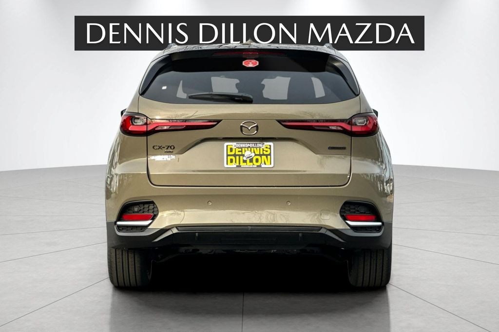 Zircon Sand Metallic 2026 Mazda CX-70 3.3 Turbo Premium Plus AWD 8-Speed Automatic I6 Turbo 12 Speakers, 4-Wheel Disc Brakes, ABS brakes, Air Conditioning, Alloy wheels, AM/FM radio: SiriusXM, Auto High-beam Headlights, Auto-dimming door mirrors, Auto-dimming Rear-View mirror, Automatic temperature control, Brake assist, Bumpers: body-color, Cargo Net, Compass, Delay-off headlights, Driver door bin, Driver vanity mirror, Dual front impact airbags, Dual front side impact airbags, E911 Automatic Emergency Notification, Electronic Stability Control, Emergency communication system: MAZDA CONNECT, Four wheel independent suspension, Front anti-roll bar, Front Bucket Seats, Front Center Armrest w/Storage, Front dual zone A/C, Front reading lights, Fully automatic headlights, Garage door transmitter: HomeLink, Heads-Up Display, Heated door mirrors, Heated front seats, Heated rear seats, Heated steering wheel, Heated/Ventilated Front Bucket Seats, Illuminated entry, Infotainment System Voice Command, Knee airbag, Leather Shift Knob, Leather steering wheel, Low tire pressure warning, Mazda Connected Services, Mazda Online Navigation, Memory seat, Nappa Leather Seat Trim, Navigation system: MAZDA CONNECT, Occupant sensing airbag, Outside temperature display, Overhead airbag, Overhead console, Panic alarm, Passenger door bin, Passenger vanity mirror, Power door mirrors, Power driver seat, Power Liftgate, Power moonroof, Power passenger seat, Power steering, Power windows, Radio Broadcast Data System Program Information, Radio data system, Radio: AM/FM with Bose Premium Audio Sound System, Rain sensing wipers, Rear air conditioning, Rear anti-roll bar, Rear reading lights, Rear seat center armrest, Rear window defroster, Rear window wiper, Remote keyless entry, Security system, SMS Text Message Audio Delivery and Reply, Speed control, Speed-sensing steering, Split folding rear seat, Spoiler, Steering wheel mounted audio controls, Tachometer, Telescoping steering wheel, Tilt steering wheel, Traction control, Trip computer, Variably intermittent wipers, Ventilated front seats, Wheels: 21 x 9.5J Aluminum Alloy, Zircon Sand Metallic Paint Charge.