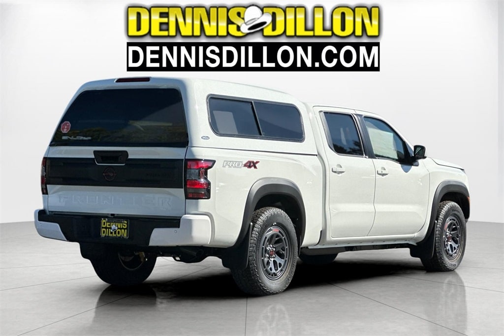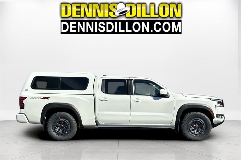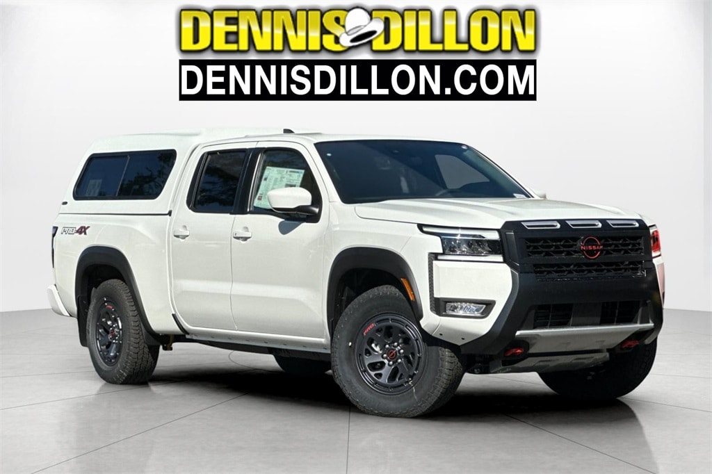 Glacier White 2025 Nissan Frontier PRO-4X 4D Crew Cab 4WD 9-Speed Automatic with Overdrive 3.8L DI DOHC 24V V6 17" Painted Alloy Wheels, 3.692 Axle Ratio, 4-Wheel Disc Brakes, 6 Speakers, ABS brakes, Air Conditioning, Alloy wheels, AM/FM radio: SiriusXM, Anti-whiplash front head restraints, Auto High-beam Headlights, Automatic temperature control, Blind Spot Warning, Brake assist, Bumpers: body-color, Delay-off headlights, Driver door bin, Driver vanity mirror, Drop-In Bed Liner & Bumper Step, Dual front impact airbags, Dual front side impact airbags, Electronic Stability Control, Electronic Tailgate Lock, Emergency communication system, Essentials Kit, Front anti-roll bar, Front Bucket Seats, Front Center Armrest, Front dual zone A/C, Front fog lights, Front reading lights, Front wheel independent suspension, Fully automatic headlights, Illuminated entry, Knee airbag, Leather Shift Knob, Leather steering wheel, Low tire pressure warning, Mud Flap Accessory, Occupant sensing airbag, Overhead airbag, Overhead console, Panic alarm, Passenger door bin, Passenger vanity mirror, Power door mirrors, Power driver seat, Power passenger seat, Power steering, Power windows, PRO Embroidered Premium Cloth Seat Trim, Radio data system, Radio: SXM/AM/FM/AUX/USB Audio System, Rear anti-roll bar, Rear seat center armrest, Rear side impact airbag, Rear step bumper, Remote Engine Starter Accessory, Remote keyless entry, Security system, Speed control, Speed-sensing steering, Split folding rear seat, Steering wheel mounted audio controls, Tachometer, Telescoping steering wheel, Tilt steering wheel, Traction control, Trip computer, Variably intermittent wipers, Voltmeter, Wireless Apple CarPlay/Wireless Android Auto.