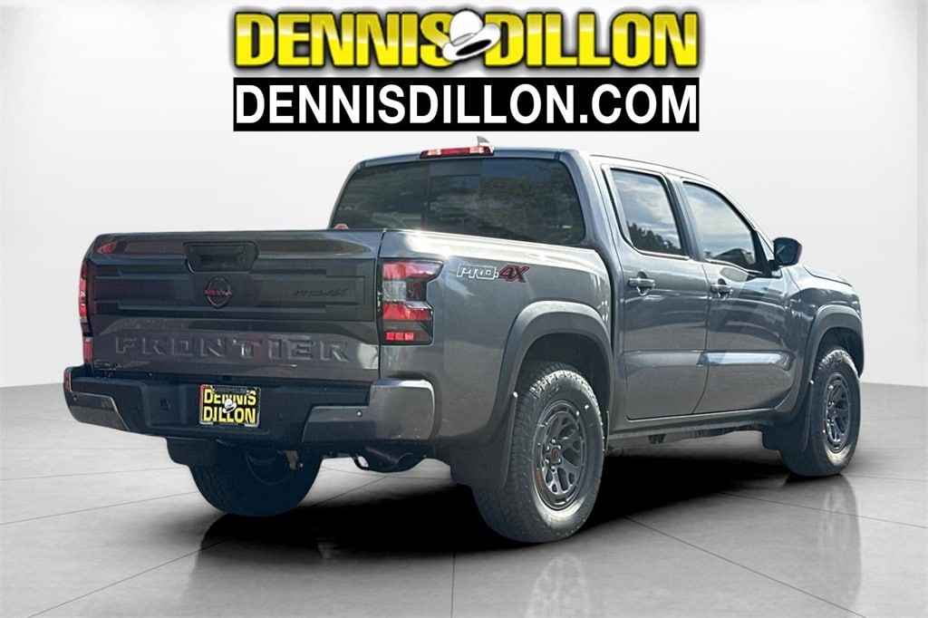 Gun Metallic 2025 Nissan Frontier PRO-4X 4D Crew Cab 4WD 9-Speed Automatic with Overdrive 3.8L DI DOHC 24V V6 17" Painted Alloy Wheels, 3.692 Axle Ratio, 4-Wheel Disc Brakes, 6 Speakers, ABS brakes, Air Conditioning, Alloy wheels, AM/FM radio: SiriusXM, Anti-whiplash front head restraints, Auto High-beam Headlights, Automatic temperature control, Blind Spot Warning, Brake assist, Bumpers: body-color, Delay-off headlights, Driver door bin, Driver vanity mirror, Drop-In Bed Liner & Bumper Step, Dual front impact airbags, Dual front side impact airbags, Electronic Stability Control, Electronic Tailgate Lock, Emergency communication system, Essentials Kit, Front anti-roll bar, Front Bucket Seats, Front Center Armrest, Front dual zone A/C, Front fog lights, Front reading lights, Front wheel independent suspension, Fully automatic headlights, Illuminated entry, Knee airbag, Leather Shift Knob, Leather steering wheel, Low tire pressure warning, Mud Flap Accessory, Occupant sensing airbag, Overhead airbag, Overhead console, Panic alarm, Passenger door bin, Passenger vanity mirror, Power door mirrors, Power driver seat, Power passenger seat, Power steering, Power windows, PRO Embroidered Premium Cloth Seat Trim, Radio data system, Radio: SXM/AM/FM/AUX/USB Audio System, Rear anti-roll bar, Rear seat center armrest, Rear side impact airbag, Rear step bumper, Remote Engine Starter, Remote Engine Starter Accessory, Remote keyless entry, Security system, Speed control, Speed-sensing steering, Split folding rear seat, Steering wheel mounted audio controls, Tachometer, Telescoping steering wheel, Tilt steering wheel, Traction control, Trip computer, Variably intermittent wipers, Voltmeter, Wireless Apple CarPlay/Wireless Android Auto.