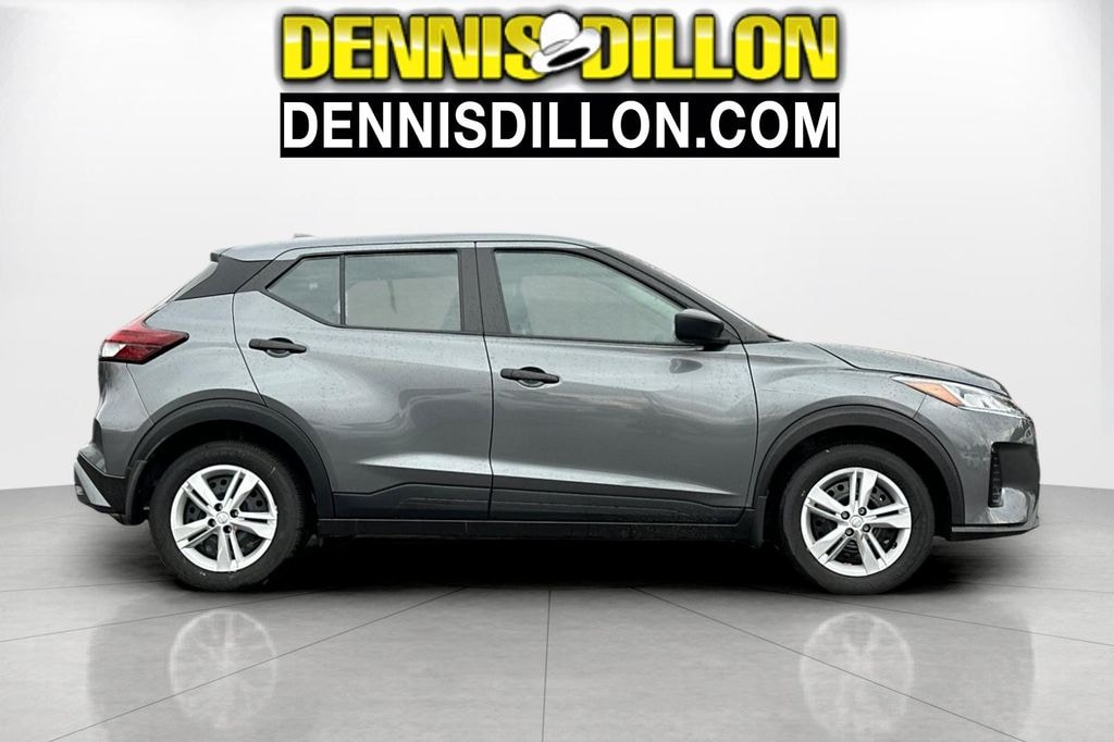 Gun Metallic 2025 Nissan Kicks Play S 4D Sport Utility FWD CVT with Xtronic 1.6L 4-Cylinder DOHC 16V 16" Steel Wheels w/Full Covers, 6 Speakers, ABS brakes, Air Conditioning, AM/FM radio, Apple CarPlay/Android Auto, Auto High-beam Headlights, Blind Spot Warning, Brake assist, Bumpers: body-color, Carpeted Floor Mats w/Cargo Mat, Center Armrest w/Storage, Cloth Seat Trim w/Single Stitch, Driver door bin, Driver vanity mirror, Driver's Seat Mounted Armrest, Dual front impact airbags, Dual front side impact airbags, Electronic Stability Control, Front anti-roll bar, Front Bucket Seats, Front reading lights, Front wheel independent suspension, Fully automatic headlights, Illuminated entry, Knee airbag, Low tire pressure warning, Occupant sensing airbag, Outside temperature display, Overhead airbag, Panic alarm, Passenger door bin, Passenger vanity mirror, Power door mirrors, Power steering, Power windows, Radio data system, Radio: AM/FM Audio System, Rear Parking Sensors, Rear reading lights, Rear side impact airbag, Rear window defroster, Rear window wiper, Remote keyless entry, Speed control, Splash Guards Grain (4 Piece), Split folding rear seat, Sport steering wheel, Steering wheel mounted audio controls, Tachometer, Telescoping steering wheel, Tilt steering wheel, Traction control, Trip computer, Variably intermittent wipers.