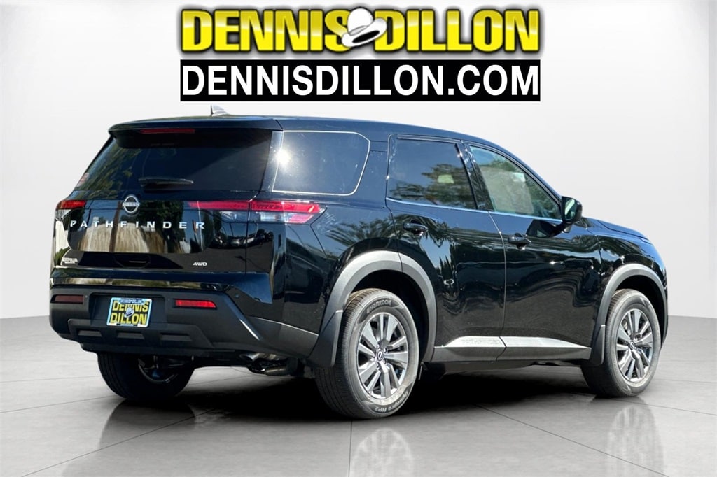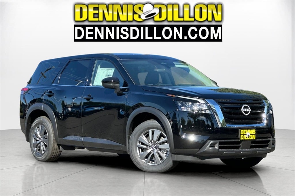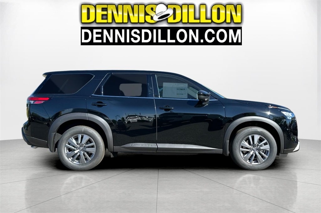 Super Black 2025 Nissan Pathfinder S 4D Sport Utility 4WD 9-Speed Automatic 3.5L V6 DOHC 3rd row seats: bench, 4-Wheel Disc Brakes, 6 Speakers, ABS brakes, Air Conditioning, Alloy wheels, AM/FM radio: SiriusXM, Auto High-beam Headlights, Automatic temperature control, Bench Seat Carpeted Floor Mats (Set of 4), Black Splash Guards (Set of 4), Blind Spot Warning, Brake assist, Bumpers: body-color, Cloth Seating Surfaces, Delay-off headlights, Driver door bin, Driver vanity mirror, Dual front impact airbags, Dual front side impact airbags, Electronic Stability Control, Four wheel independent suspension, Front anti-roll bar, Front Bucket Seats, Front Center Armrest, Front dual zone A/C, Front reading lights, Fully automatic headlights, Illuminated entry, Knee airbag, Low tire pressure warning, Nissan USB Charging Cable Set, NissanConnect featuring Apple CarPlay and Android Auto, Occupant sensing airbag, Outside temperature display, Overhead airbag, Overhead console, Panic alarm, Passenger door bin, Passenger vanity mirror, Power door mirrors, Power steering, Power windows, Radio data system, Radio: AM/FM Audio System w/NissanConnect, Rear air conditioning, Rear anti-roll bar, Rear Parking Sensors, Rear reading lights, Rear side impact airbag, Rear window defroster, Rear window wiper, Reclining 3rd row seat, Remote keyless entry, Security system, Speed control, Speed-sensing steering, Split folding rear seat, Spoiler, Steering wheel mounted audio controls, Tachometer, Telescoping steering wheel, Tilt steering wheel, Traction control, Trip computer, Variably intermittent wipers, Wheels: 18" x 8J Painted Alloy.