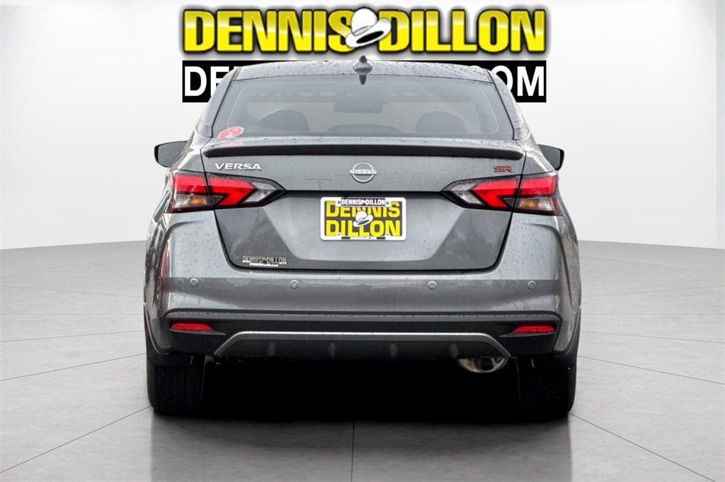 Gun Metallic 2025 Nissan Versa 1.6 SR 4D Sedan FWD CVT 1.6L I4 DOHC 16V 17" Aluminum Alloy Wheels, 6 Speakers, ABS brakes, Air Conditioning, Alloy wheels, AM/FM radio: SiriusXM, Apple CarPlay/Android Auto, Auto High-beam Headlights, Automatic temperature control, Blind Spot Warning, Brake assist, Bumpers: body-color, Carpeted Floor Mats & Trunk Mat (5-Piece Set), Delay-off headlights, Driver door bin, Driver vanity mirror, Dual front impact airbags, Dual front side impact airbags, Electronic Stability Control, Emergency communication system, Front anti-roll bar, Front Bucket Seats, Front Center Armrest, Front reading lights, Front wheel independent suspension, Fully automatic headlights, Heated door mirrors, Heated Front Bucket Seats, Heated front seats, Illuminated entry, Knee airbag, Leather steering wheel, Low tire pressure warning, Occupant sensing airbag, Outside temperature display, Overhead airbag, Panic alarm, Passenger door bin, Passenger vanity mirror, Power door mirrors, Power steering, Power windows, Radio data system, Radio: AM/FM Audio System, Rear Parking Sensors, Rear side impact airbag, Rear window defroster, Remote keyless entry, Shopping Bag Hooks, Speed control, Splash Guards, Split folding rear seat, Spoiler, SR Fabric Seat Trim, Steering wheel mounted audio controls, Tachometer, Telescoping steering wheel, Tilt steering wheel, Traction control, Trip computer, Trunk Net, Trunk Package, Turn signal indicator mirrors, Variably intermittent wipers.