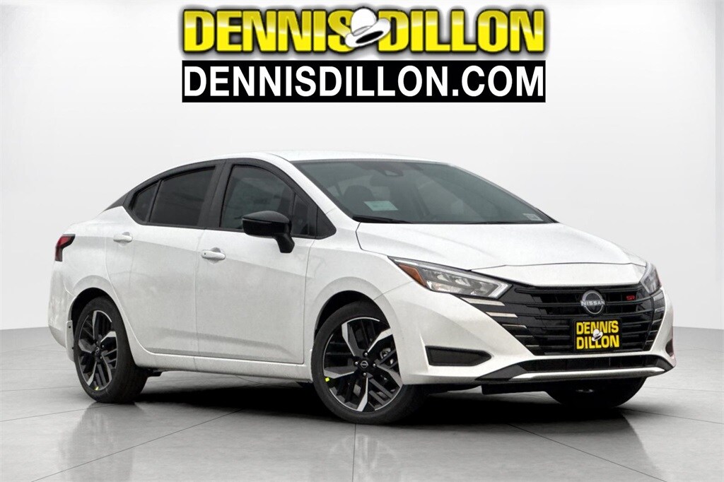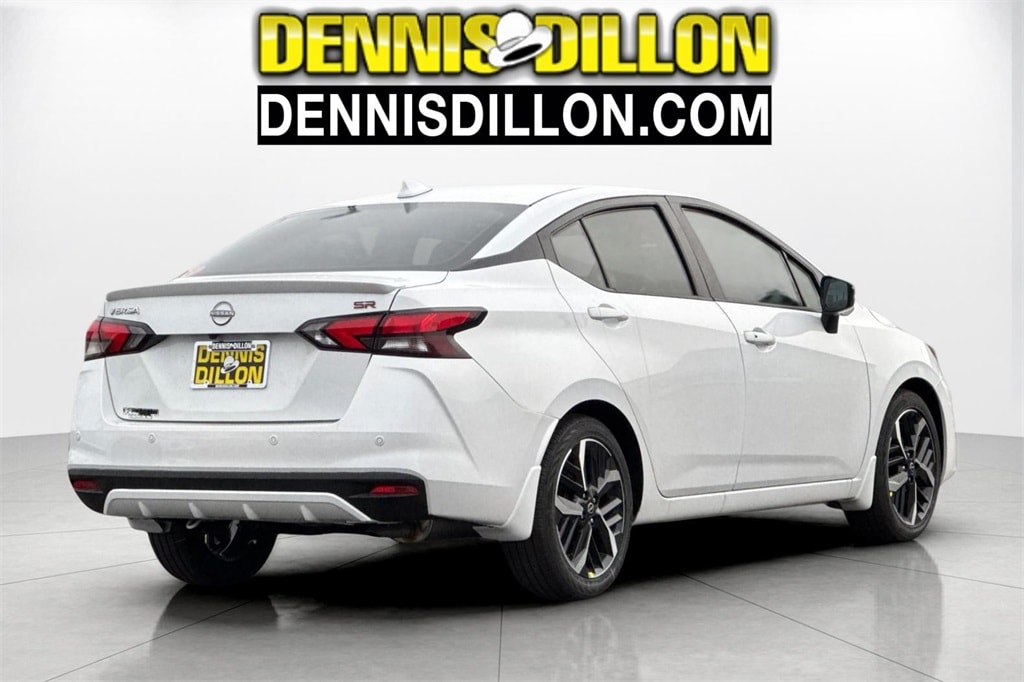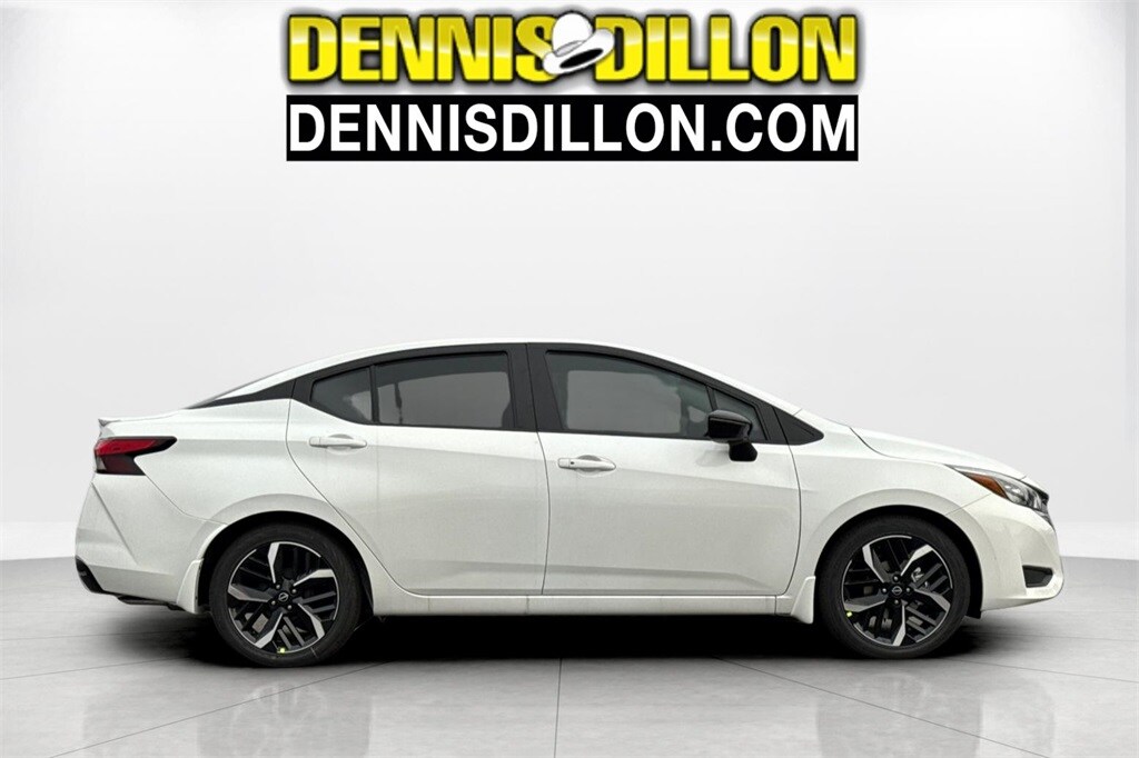 Aspen White Tricoat 2025 Nissan Versa 1.6 SR 4D Sedan FWD CVT 1.6L I4 DOHC 16V 17" Aluminum Alloy Wheels, 6 Speakers, ABS brakes, Air Conditioning, Alloy wheels, AM/FM radio: SiriusXM, Apple CarPlay/Android Auto, Auto High-beam Headlights, Automatic temperature control, Blind Spot Warning, Brake assist, Bumpers: body-color, Carpeted Floor Mats & Trunk Mat (5-Piece Set), Delay-off headlights, Driver door bin, Driver vanity mirror, Dual front impact airbags, Dual front side impact airbags, Electronic Stability Control, Emergency communication system, Front anti-roll bar, Front Bucket Seats, Front Center Armrest, Front reading lights, Front wheel independent suspension, Fully automatic headlights, Heated door mirrors, Heated Front Bucket Seats, Heated front seats, Illuminated entry, Knee airbag, Leather steering wheel, Low tire pressure warning, Occupant sensing airbag, Outside temperature display, Overhead airbag, Panic alarm, Passenger door bin, Passenger vanity mirror, Power door mirrors, Power steering, Power windows, Premium Paint, Radio data system, Radio: AM/FM Audio System, Rear Parking Sensors, Rear side impact airbag, Rear window defroster, Remote keyless entry, Shopping Bag Hooks, Speed control, Splash Guards, Split folding rear seat, Spoiler, SR Fabric Seat Trim, Steering wheel mounted audio controls, Tachometer, Telescoping steering wheel, Tilt steering wheel, Traction control, Trip computer, Trunk Net, Trunk Package, Turn signal indicator mirrors, Variably intermittent wipers.