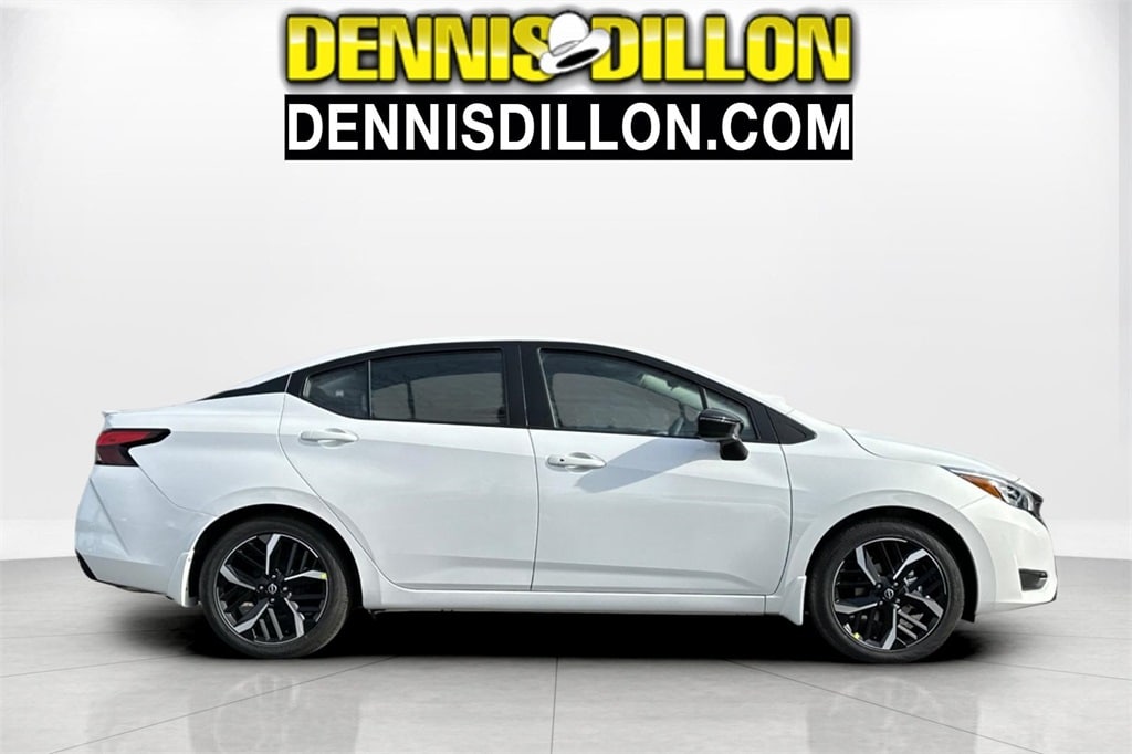 Aspen White Tricoat 2025 Nissan Versa 1.6 SR 4D Sedan FWD CVT 1.6L I4 DOHC 16V 17" Aluminum Alloy Wheels, 6 Speakers, ABS brakes, Air Conditioning, Alloy wheels, AM/FM radio: SiriusXM, Apple CarPlay/Android Auto, Auto High-beam Headlights, Automatic temperature control, Blind Spot Warning, Brake assist, Bumpers: body-color, Carpeted Floor Mats & Trunk Mat (5-Piece Set), Delay-off headlights, Driver door bin, Driver vanity mirror, Dual front impact airbags, Dual front side impact airbags, Electronic Stability Control, Emergency communication system, Front anti-roll bar, Front Bucket Seats, Front Center Armrest, Front reading lights, Front wheel independent suspension, Fully automatic headlights, Heated door mirrors, Heated Front Bucket Seats, Heated front seats, Illuminated entry, Knee airbag, Leather steering wheel, Low tire pressure warning, Occupant sensing airbag, Outside temperature display, Overhead airbag, Panic alarm, Passenger door bin, Passenger vanity mirror, Power door mirrors, Power steering, Power windows, Premium Paint, Radio data system, Radio: AM/FM Audio System, Rear Parking Sensors, Rear side impact airbag, Rear window defroster, Remote keyless entry, Shopping Bag Hooks, Speed control, Splash Guards, Split folding rear seat, Spoiler, SR Fabric Seat Trim, Steering wheel mounted audio controls, Tachometer, Telescoping steering wheel, Tilt steering wheel, Traction control, Trip computer, Trunk Net, Trunk Package, Turn signal indicator mirrors, Variably intermittent wipers.