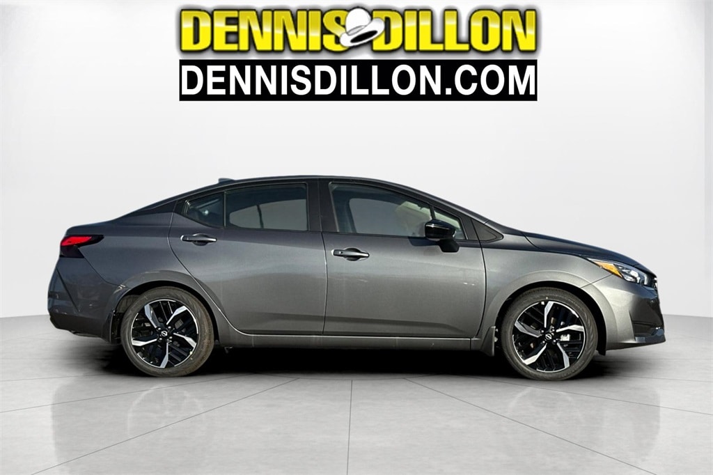Gun Metallic 2025 Nissan Versa 1.6 SR 4D Sedan FWD CVT 1.6L I4 DOHC 16V 17" Aluminum Alloy Wheels, 6 Speakers, ABS brakes, Air Conditioning, Alloy wheels, AM/FM radio: SiriusXM, Apple CarPlay/Android Auto, Auto High-beam Headlights, Automatic temperature control, Blind Spot Warning, Brake assist, Bumpers: body-color, Carpeted Floor Mats & Trunk Mat (5-Piece Set), Delay-off headlights, Driver door bin, Driver vanity mirror, Dual front impact airbags, Dual front side impact airbags, Electronic Stability Control, Emergency communication system, Front anti-roll bar, Front Bucket Seats, Front Center Armrest, Front reading lights, Front wheel independent suspension, Fully automatic headlights, Heated door mirrors, Heated Front Bucket Seats, Heated front seats, Illuminated entry, Knee airbag, Leather steering wheel, Low tire pressure warning, Occupant sensing airbag, Outside temperature display, Overhead airbag, Panic alarm, Passenger door bin, Passenger vanity mirror, Power door mirrors, Power steering, Power windows, Radio data system, Radio: AM/FM Audio System, Rear Parking Sensors, Rear side impact airbag, Rear window defroster, Remote keyless entry, Shopping Bag Hooks, Speed control, Splash Guards, Split folding rear seat, Spoiler, SR Fabric Seat Trim, Steering wheel mounted audio controls, Tachometer, Telescoping steering wheel, Tilt steering wheel, Traction control, Trip computer, Trunk Net, Trunk Package, Turn signal indicator mirrors, Variably intermittent wipers.