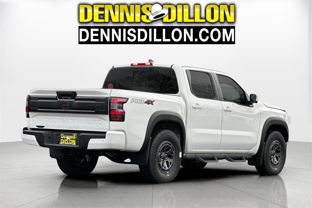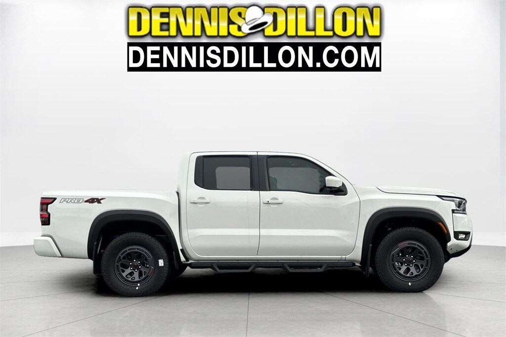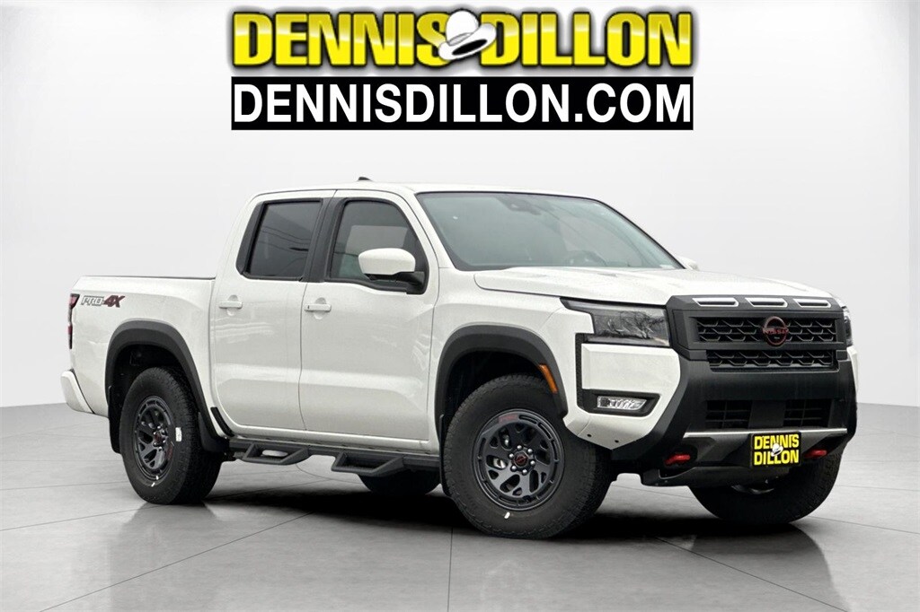Glacier White 2026 Nissan Frontier PRO-4X 4D Crew Cab 4WD 9-Speed Automatic with Overdrive 3.8L DI DOHC 24V V6 120V Power Outlet in Bed, 120V Power Outlet in Rear Center Console, 17" Painted Alloy Wheels, 3.692 Axle Ratio, 4-Wheel Disc Brakes, 6 Speakers, ABS brakes, Air Conditioning, Alloy wheels, AM/FM radio: SiriusXM, Anti-whiplash front head restraints, Auto High-beam Headlights, Automatic temperature control, Bed Under-Rail Lighting, Blind Spot Warning, Brake assist, Bumpers: body-color, Delay-off headlights, Driver door bin, Driver vanity mirror, Dual front impact airbags, Dual front side impact airbags, Electronic Stability Control, Electronic Tailgate Lock, Emergency communication system, Essentials Kit, Front anti-roll bar, Front Bucket Seats, Front Center Armrest, Front dual zone A/C, Front fog lights, Front reading lights, Front wheel independent suspension, Fully automatic headlights, Heated Front Bucket Seats, Heated Front Seats, Heated Outside Mirrors, Heated Steering Wheel, Illuminated entry, Intelligent Around View Monitor (I-AVM), Knee airbag, Leather steering wheel, Low tire pressure warning, Mud Flaps, Occupant sensing airbag, Off-Road Style Step Rails, Overhead airbag, Overhead console, Panic alarm, Passenger door bin, Passenger vanity mirror, Power door mirrors, Power driver seat, Power passenger seat, Power steering, Power windows, PRO Embroidered Premium Cloth Seat Trim, PRO-4X Convenience Package, Radio data system, Radio: SXM/AM/FM/AUX/USB Audio System, Rear anti-roll bar, Rear seat center armrest, Rear side impact airbag, Rear step bumper, Remote Engine Starter, Remote keyless entry, Security system, Speed control, Speed-sensing steering, Split folding rear seat, Spray-In Bedliner, Steering wheel mounted audio controls, Tachometer, Telescoping steering wheel, Tilt steering wheel, Traction control, Trailer Hitch w/Wiring Harness, Trip computer, Utili-Track System, Variably intermittent wipers, Voltmeter, Wireless Apple CarPlay/Wireless Android Auto, Wireless Charging for Personal Devices.