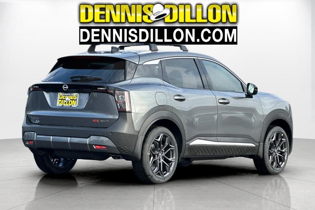 Gun Metallic 2026 Nissan Kicks SR 4D Sport Utility AWD CVT with Xtronic 2.0L DOHC 17" Alloy Wheels, 4-Wheel Disc Brakes, 6 Speakers, ABS brakes, Air Conditioning, Alloy wheels, AM/FM radio, Auto High-beam Headlights, Automatic temperature control, Brake assist, Bumpers: body-color, Carpeted Floor Mats, Cold Weather Package, Crossbars, Delay-off headlights, Driver door bin, Driver vanity mirror, Dual front impact airbags, Dual front side impact airbags, Electronic Stability Control, Emergency communication system: NissanConnect Services, Exterior Parking Camera Rear, Four wheel independent suspension, Front anti-roll bar, Front Bucket Seats, Front Center Armrest, Front reading lights, Fully automatic headlights, Garage door transmitter: myQ Connected Garage, Heated Front Seats, Heated Mirrors, Illuminated entry, Knee airbag, Leather Shift Knob, Leather steering wheel, Low tire pressure warning, NissanConnect featuring Apple CarPlay and Android Auto, Occupant sensing airbag, Outside temperature display, Overhead airbag, Overhead console, Panic alarm, Passenger door bin, Passenger vanity mirror, Power door mirrors, Power steering, Power windows, Radio data system, Radio: AM/FM/SiriusXM Audio System, Rear anti-roll bar, Rear Floor Heater Ducts, Rear reading lights, Rear seat center armrest, Rear side impact airbag, Rear window defroster, Rear window wiper, Remote keyless entry, Security system, Speed control, Speed-sensing steering, Splash Guards, Split folding rear seat, Spoiler, Sport Leatherette w/Cloth Insert Seat Trim, Sport steering wheel, Steering wheel mounted audio controls, Tachometer, Telescoping steering wheel, Tilt steering wheel, Traction control, Trip computer, Turn signal indicator mirrors, Variably intermittent wipers, Wheels: 19" Dark Gray Alloy.