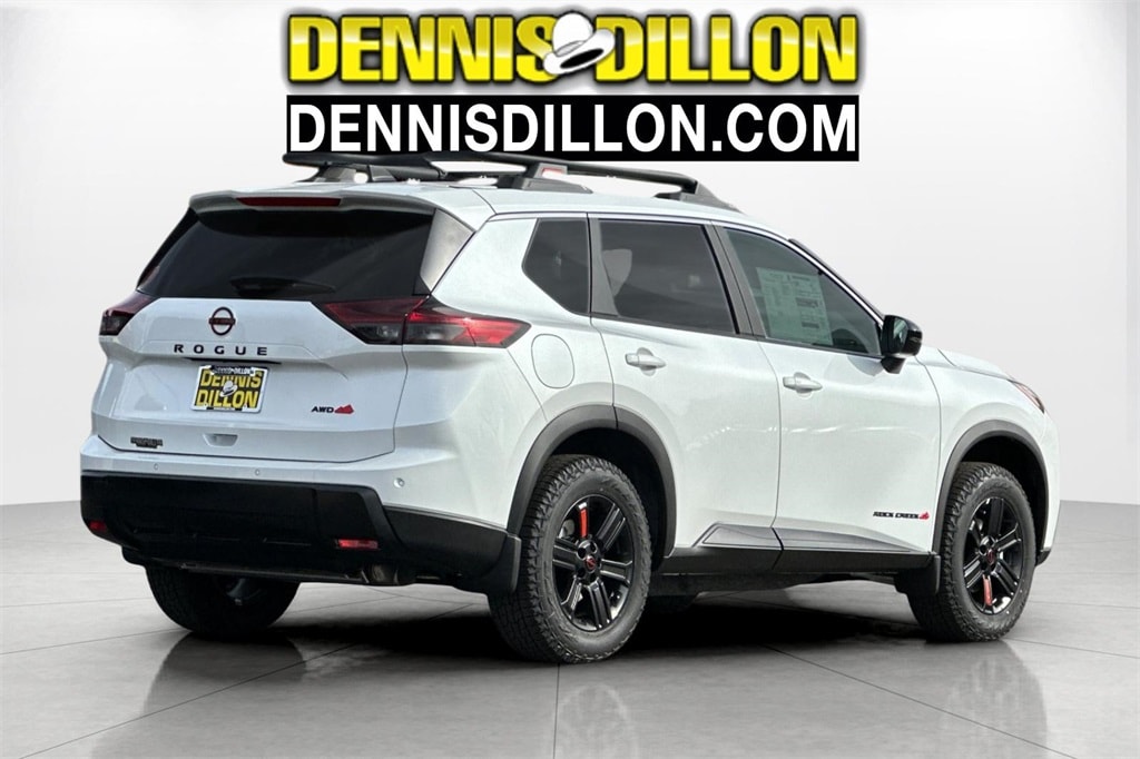 Everest White Pearl Tricoat 2026 Nissan Rogue Rock Creek 4D Sport Utility AWD CVT with Xtronic 1.5L DOHC 4-Way Power Passenger Seat, 4-Wheel Disc Brakes, 6 Speakers, ABS brakes, Air Conditioning, Alloy wheels, AM/FM radio: Sirius, Apple CarPlay/Android Auto, Auto High-beam Headlights, Auto-Dimming Inside Mirror, Automatic temperature control, Black Splash Guards (Set of 4), Brake assist, Delay-off headlights, Driver door bin, Driver vanity mirror, Dual front impact airbags, Dual front side impact airbags, Electronic Stability Control, Emergency communication system: NissanConnect Services, Four wheel independent suspension, Front anti-roll bar, Front Bucket Seats, Front Center Armrest, Front dual zone A/C, Front reading lights, Fully automatic headlights, Heated door mirrors, Heated Front Bucket Seats, Heated front seats, Illuminated entry, Interior LED Accent Lighting, Knee airbag, Leatherette & Ballistic Nylon Seating, Low tire pressure warning, Memory Driver Seat & Outside Mirrors, Motion-Activated Power Liftgate, Occupant sensing airbag, Outside temperature display, Overhead airbag, Overhead console, Panic alarm, Passenger door bin, Passenger vanity mirror, Power door mirrors, Power driver seat, Power Liftgate, Power steering, Power windows, Premium Paint, Radio data system, Radio: AM/FM NissanConnect, Rear anti-roll bar, Rear seat center armrest, Rear side impact airbag, Rear window defroster, Rear window wiper, Remote keyless entry, Reverse Tilt-Down Outside Mirrors, Rock Creek Premium Package, Roof rack, Speed control, Speed-sensing steering, Speed-Sensitive Wipers, Split folding rear seat, Spoiler, Steering wheel mounted audio controls, Tachometer, Telescoping steering wheel, Tilt steering wheel, Traction control, Trip computer, Variably intermittent wipers, Wheels: 17" Dark Painted Alloy, Wireless Charging Pad.