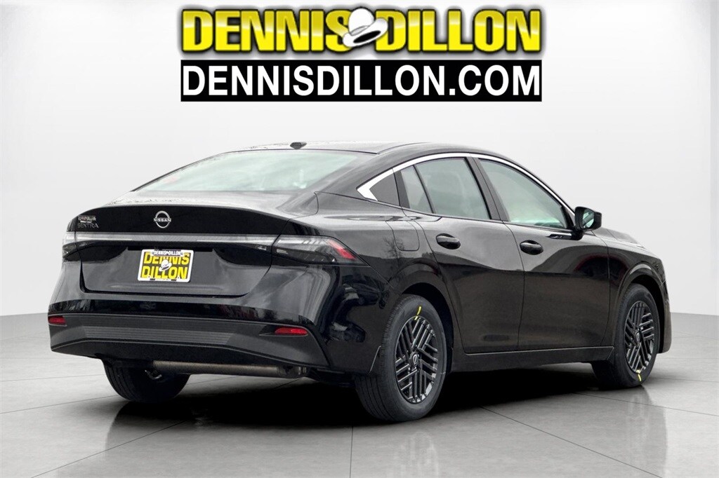 Super Black 2026 Nissan Sentra SV 4D Sedan FWD CVT with Xtronic 2.0L I4 DOHC 16" Machined Alloy Wheels, 4 Speakers, 4-Wheel Disc Brakes, ABS brakes, Air Conditioning, Alloy wheels, AM/FM radio: Sirius, Auto High-beam Headlights, Automatic temperature control, Body Colored Splash Guards (4-Piece), Brake assist, Bumpers: body-color, Delay-off headlights, Driver door bin, Driver vanity mirror, Dual front impact airbags, Dual front side impact airbags, Electronic Stability Control, Floor Mat Package, Four wheel independent suspension, Front anti-roll bar, Front Bucket Seats, Front Center Armrest, Front reading lights, Fully automatic headlights, Illuminated entry, Knee airbag, Low tire pressure warning, Occupant sensing airbag, Outside temperature display, Overhead airbag, Overhead console, Panic alarm, Passenger door bin, Passenger vanity mirror, Power door mirrors, Power steering, Power windows, Premium Cloth Seat Trim, Radio data system, Radio: AM/FM with RDS/MP3, Rear anti-roll bar, Rear side impact airbag, Rear window defroster, Remote keyless entry, Security system, Speed control, Speed-sensing steering, Split folding rear seat, Steering wheel mounted audio controls, Tachometer, Telescoping steering wheel, Tilt steering wheel, Traction control, Trip computer, Variably intermittent wipers, Wireless Apple CarPlay/Wireless Android Auto.