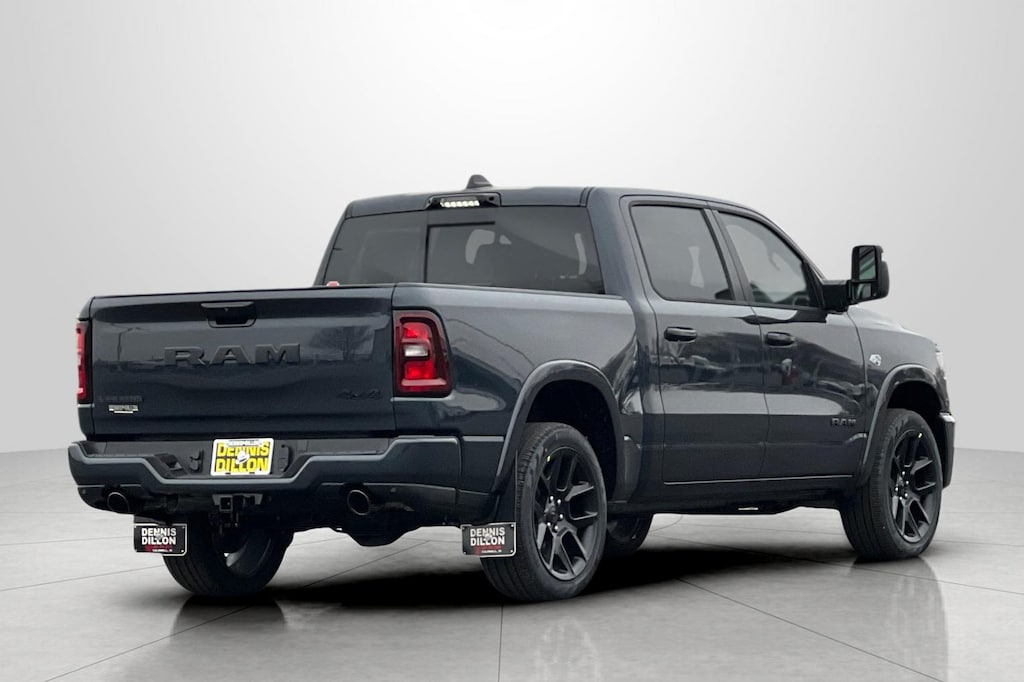 10 Speakers, 12-Way/1-Way Trailer Connector, 14.4" Touchscreen Display, 33 Gallon Fuel Tank, 4-Wheel Disc Brakes, 4G LTE Wi-Fi Hot Spot, ABS brakes, Accent Color Door Handles, Accent Color Premium Power Mirrors, Accent Color Tailgate Handle, Active Driving Assist System, Active Noise Control System, Adjustable pedals, Advanced Safety Group II, Air Conditioning, Alloy wheels, AM/FM radio: SiriusXM with 360L, Anti-Spin Differential Rear Axle, Apple CarPlay/Android Auto, Audio memory, Auto High-beam Headlights, Auto Power-Folding Mirrors, Auto-dimming door mirrors, Auto-Dimming Exterior Driver Mirror, Auto-Dimming Exterior Passenger Mirror, Auto-dimming Rear-View mirror, Automatic temperature control, Black Exterior Mirrors, Black Exterior Truck Badging, Black Headlamp Bezels, Black Interior Accents, Black Painted Exterior Mirrors Caps, Black Power-Fold Trailer Tow Mirrors, Black Tail Lamp Bezels, Body Color Front Bumper, Body Color Rear Bumper with Step Pads, Brake assist, Bumpers: chrome, Chrome Exterior Mirrors, Cluster 12" TFT Color Display, Compass, Connected Travel and Traffic Services, Connectivity - US/Canada, Convex Wide-Angle Exterior Mirror Insert, Delay-off headlights, Dome Dual LED Reading Lamp, Driver door bin, Driver vanity mirror, Drowsy Driver Detection, Dual Exhaust with Black Tips, Dual front impact airbags, Dual front side impact airbags, Dual-Pane Panoramic Sunroof, Electronic Stability Control, Evasive Steer Assist, Exterior Mirrors Approach Lamps, Exterior Mirrors Courtesy Lamps, Exterior Mirrors with Heating Element, Exterior Mirrors with Memory, Exterior Mirrors with Supplemental Signals, Forward and Reverse Utility Lights, Front anti-roll bar, Front Bucket Seats, Front Center Armrest w/Storage, Front dual zone A/C, Front fog lights, Front License Plate Bracket, Front Passenger Interactive Display, Front reading lights, Front wheel independent suspension, Fully automatic headlights, Garage door transmitter, GPS Navigation, Grille Surround 3 Black Texture 2 Black, Harman/Kardon 19 Speaker Premium Sound, Heads-Up Display, Heated door mirrors, Heated front seats, Heated rear seats, Heated steering wheel, Illuminated entry, Integrated Center Stack Radio, Integrated Voice Command with Bluetooth, Intersection Collision Assist System, Laramie Level 2 Equipment Group, Leather steering wheel, Leather Trimmed Bucket Seats, LED CHMSL Lamp, LED Dome/Reading Lamp, Low tire pressure warning, Manufacturer's Statement of Origin, Memory seat, Mirror Clearance/Running Lights, MOPAR Front and Rear Rubber Floor Mats, Navigation System, Night Edition, Occupant sensing airbag, Off-Road Information Pages, Outside temperature display, Overhead airbag, Overhead console, Panic alarm, ParkView Rear Back-Up Camera, Passenger door bin, Passenger vanity mirror, Pedal memory, Pirelli Brand Tires, Power door mirrors, Power driver seat, Power passenger seat, Power steering, Power Tailgate, Power Telescoping Mirrors, Power windows, Power-Adjustable Convex Aux Mirrors, Proximity Approach/Departure Lamps, Quick Order Package 27H Laramie, Radio data system, Radio: Uconnect 5 Nav with 14.4" Display, Radio: Uconnect 5 Navigation with 12.0" Display, Rain Sensitive Windshield Wipers, RAM Grille Badge - Black, RAM Grille Badge - Chrome, Rear anti-roll bar, Rear reading lights, Rear seat center armrest, Rear step bumper, Rear Wheelhouse Liners, Remote keyless entry, Security system, SiriusXM Radio Service, SiriusXM with 360L, Speed control, Split folding rear seat, Sport Performance Hood, Steering wheel mounted audio controls, Surround View Camera System, Tachometer, Technology Group, Telescoping steering wheel, Tilt steering wheel, Towing Technology Group, Traction control, Traffic Sign Recognition, Trailer Brake Control, Trailer Hitch Line-Up Assist, Tra Price includes: $3500 - 2026 National Retail Bonus Cash . Exp. 04/30/2