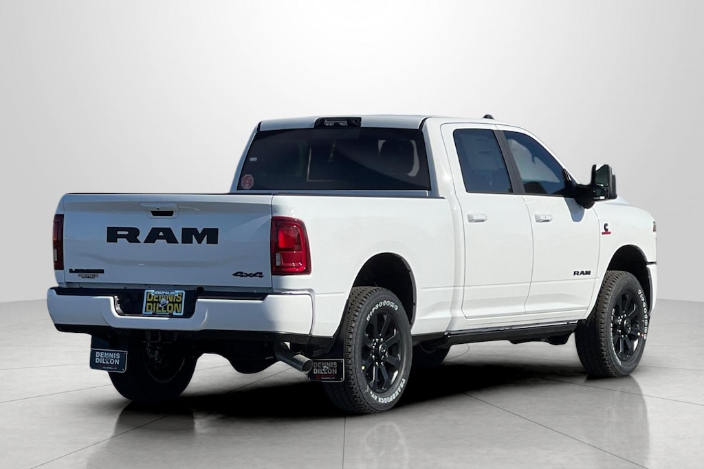 #1 Seat Foam Cushion, 10 Speakers, 115V Auxiliary Rear Power Outlet, 14.4" Touchscreen Display, 17 Speaker Harman/Kardon Premium Sound, 2 Way Rear Headrest Seat, 2nd Row in Floor Storage Bins, 4 Way Front Headrests, 4-Wheel Disc Brakes, 4G LTE Wi-Fi Hot Spot, 5th Wheel/Gooseneck Towing Prep Group, ABS brakes, Active Lane Management System, Adaptive Steering System, Air Conditioning, Alexa Built-in, Alloy wheels, AM/FM radio: SiriusXM with 360L, Anti-Spin Differential Rear Axle, Apple CarPlay, Apple CarPlay/Android Auto, Auto Adjust in Reverse Exterior Mirrors, Auto Dim Exterior Mirror, Auto High Beam Headlamp Control, Auto Level Rear Air Suspension, Auto Power-Folding Mirrors, Auto-Dimming Exterior Passenger Mirror, Auto-dimming Rear-View mirror, Automatic temperature control, Black Exterior Mirrors, Black Exterior Truck Badging, Black Wheel Center Hub, Body Color Grille-Surround, Brake assist, Bucket Seats, Bumpers: body-color, Center Stop Lamp with Cargo View Camera, Chrome Exterior Mirrors, Clearance Lamps, Compass, Connected Travel and Traffic Services, Connectivity - US/Canada, Delay-off headlights, Delete Deployable Bed Step, Digital 3.0 Rear View Auto Dimming Mirror, Disassociated Touchscreen Display, Driver door bin, Driver vanity mirror, Drowsy Driver Detection, Dual Alternators Rated At 480 Amps, Dual front impact airbags, Dual front side impact airbags, Dual Wireless Charging Pad, Electronic Stability Control, Emergency Vehicle Alert System (EVAS), Exterior Mirrors Courtesy Lamps, Exterior Mirrors with Heating Element, Exterior Mirrors with Memory, Exterior Mirrors with Supplemental Signals, Foam Bottle Insert (door Trim Panel), Folding Flat Load Floor Storage, For Details, Visit DriveUconnect.com, For More Info, Call 800-643-2112, Forward and Reverse Utility Lights, Front anti-roll bar, Front Center Armrest w/Storage, Front dual zone A/C, Front fog lights, Front License Plate Bracket, Front reading lights, Front Seat Back Map Pockets, Full Length Upgraded Floor Console, Fully automatic headlights, Garage door transmitter, Global Telematics Box Module, Gloss Black Grille Billets/Accents, Google Android Auto, GPS Antenna Input, GPS Navigation, HD Radio, Heated door mirrors, Heated Front Seats, Heated front seats, Heated Steering Wheel, Heated steering wheel, High Back Seats, Illuminated entry, Integrated Voice Command with Bluetooth, Laramie Level 2 Plus Equipment Group, Leather Trim 40/20/40 Bench Seat, Leather Trimmed Bucket Seats, LED Bed Lighting, Low tire pressure warning, Manufacturer's Statement of Origin, Mirror Running Lights, MOPAR Deployable Bed Step, MOPAR Spray in Bedliner, MOPAR Trailer Camera Wiring with No Camera, Navigation System, Night Edition, Occupant sensing airbag, Off-Road Info Pages, on Board Power System - 2.4KW, Outside temperature display, Overhead airbag, Overhead console, Panic alarm, ParkView Rear Back-Up Camera, Passenger door bin, Passenger vanity mirror, Power 2-Way Driver Lumbar Adjust, Power 2-Way Passenger Lumbar Adjust, Power Adjust 8-Way Driver Seat, Power Adjust 8-Way Front Passenger Seat, Power Adjust Mirrors, Power Adjustable Pedals with Memory, Power Deployable Running Boards, Power door mirrors, Power driver seat, Power Heated Fold Telescopic Mirrors with Memory, Power passenger seat, Power steering, Power Sunroof, Power Telescoping Mirrors, Power windows, Power-Adjustable Convex Aux Mirrors, Quick Order Package 24H Laramie, Radio data system, Radio: Uconnect 5 Nav with 14.4" Display, Radio: Uconnect 5 Navigation with 12.0" Display, Radio/Driver Seat/Mirrors/Pedals Memory, Rain Sensitive Windshield Wipers, Rear 60/40 Folding Seat, Rear anti-roll bar, Rear reading lights, Rear seat center armrest, Rear step bumper, Rear window defroster, Remote keyless entry, Remote Tailgate Release, Security system, Selectable Tire Fill Al Price includes: $1000 - 2026 National Bonus Cash . Exp. 04/30/2
