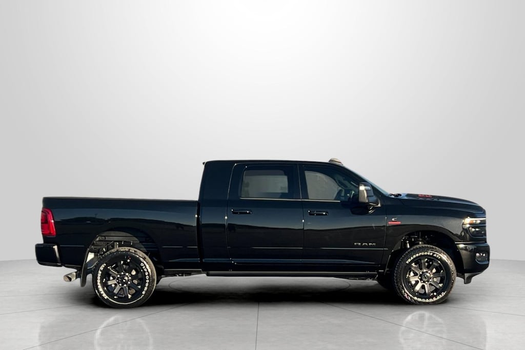 #1 Seat Foam Cushion, 10 Speakers, 115V Auxiliary Rear Power Outlet, 14.4" Touchscreen Display, 17 Speaker harman/kardon Premium Sound, 2 Way Rear Headrest Seat, 3.42 Axle Ratio, 4 Way Front Headrests, 4-Wheel Disc Brakes, 4G LTE Wi-Fi Hot Spot, ABS brakes, Active Lane Management System, Adaptive Steering System, Air Conditioning, Alexa Built-In, Alloy wheels, AM/FM radio: SiriusXM with 360L, Anti-Spin Differential Rear Axle, Apple CarPlay, Apple CarPlay/Android Auto, Auto Adjust In Reverse Exterior Mirrors, Auto Dim Exterior Mirror, Auto High Beam Headlamp Control, Auto Power-Folding Mirrors, Auto-Dimming Exterior Passenger Mirror, Auto-dimming Rear-View mirror, Automatic temperature control, Black Exterior Truck Badging, Black Wheel Center Hub, Body Color Grille Surround, Brake assist, Bucket Seats, Bumpers: body-color, Center Stop Lamp w/Cargo View Camera, Chrome Exterior Mirrors, Compass, Connected Travel & Traffic Services, Connectivity - US/Canada, Dash Pass Thru Wire Circuits, Delay-off headlights, Disassociated Touchscreen Display, Driver door bin, Driver vanity mirror, Drowsy Driver Detection, Dual front impact airbags, Dual front side impact airbags, Dual Wireless Charging Pad, Electronic Stability Control, Emergency Vehicle Alert System (EVAS), Engine Block Heater, Exterior Mirrors Courtesy Lamps, Exterior Mirrors w/Heating Element, Exterior Mirrors w/Memory, Exterior Mirrors w/Supplemental Signals, Foam Bottle Insert (Door Trim Panel), For Details, Visit DriveUconnect.com, For More Info, Call 800-643-2112, Forward & Reverse Utility Lights, Front anti-roll bar, Front Center Armrest w/Storage, Front dual zone A/C, Front fog lights, Front License Plate Bracket, Front reading lights, Front Seat Back Map Pockets, Full Length Upgraded Floor Console, Fully automatic headlights, Garage door transmitter, Global Telematics Box Module (TBM), Gloss Black Grille Billets/Accents, Google Android Auto, GPS Antenna Input, GPS Navigation, HD Radio, Heated door mirrors, Heated Front Seats, Heated front seats, Heated Steering Wheel, Heated steering wheel, High Back Seats, I/P Mounted Auxiliary Switches, Illuminated entry, Integrated Voice Command w/Bluetooth, Laramie Level 2 Plus Equipment Group, Leather Trim 40/20/40 Bench Seat, Leather Trimmed Bucket Seats, LED Bed Lighting, Low tire pressure warning, Manufacturer's Statement of Origin, Mirror Running Lights, MOPAR Deployable Bed Step, MOPAR Spray In Bedliner, Navigation System, Night Edition, Occupant sensing airbag, Off-Road Information Pages, Outside temperature display, Overhead airbag, Overhead console, Panic alarm, ParkView Rear Back-Up Camera, Passenger door bin, Passenger vanity mirror, Power 2-Way Driver Lumbar Adjust, Power 2-Way Passenger Lumbar Adjust, Power Adjust 8-Way Driver Seat, Power Adjust 8-Way Front Passenger Seat, Power Adjust Mirrors, Power Adjustable Convex Aux Mirrors, Power Adjustable Pedals w/Memory, Power Deployable Running Boards, Power door mirrors, Power driver seat, Power Heated Fold Telescope Mirrors w/Memory, Power passenger seat, Power steering, Power Sunroof, Power Telescoping Mirrors, Power windows, Quick Order Package 24H Laramie, Radio data system, Radio: Uconnect 5 Nav w/12.0" Display, Radio: Uconnect 5 Nav w/14.4" Display, Radio/Driver Seat/Mirrors/Pedals Memory, Rain Sensitive Windshield Wipers, Rear 60/40 Folding Seat, Rear anti-roll bar, Rear reading lights, Rear seat center armrest, Rear step bumper, Rear window defroster, Remote keyless entry, Remote Tailgate Release, Security system, Selectable Tire Fill Alert, SiriusXM Radio Service, SiriusXM w/360L, Speed control, Split folding rear seat, Sport Performance Hood, Steering wheel mounted audio controls, Surround View Camera System, Tachometer, Tilt steering wheel, Towing Technology Group, Traction control, Traffic Sign Recognit Price includes: $1000 - 2026 National Bonus Cash . Exp. 11/03/2