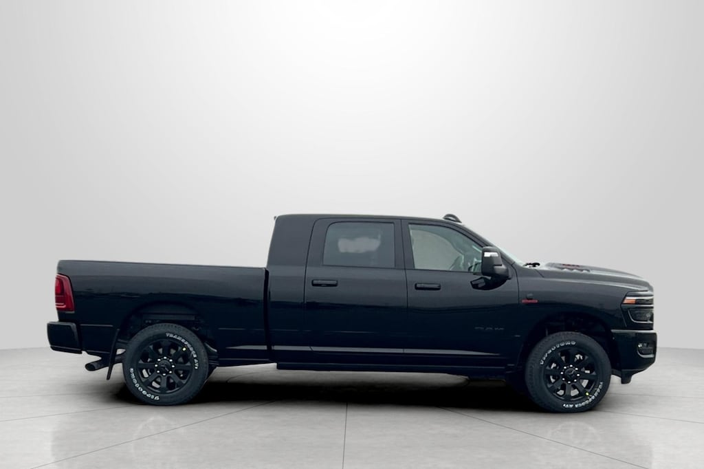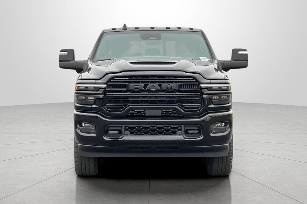 #1 Seat Foam Cushion, 10 Speakers, 115V Auxiliary Rear Power Outlet, 14.4" Touchscreen Display, 17 Speaker Harman/Kardon Premium Sound, 2 Way Rear Headrest Seat, 3.42 Axle Ratio, 4 Way Front Headrests, 4-Wheel Disc Brakes, 4G LTE Wi-Fi Hot Spot, 5th Wheel/Gooseneck Towing Prep Group, ABS brakes, Active Lane Management System, Adaptive Steering System, Air Conditioning, Alexa Built-in, Alloy wheels, AM/FM radio: SiriusXM with 360L, Apple CarPlay, Apple CarPlay/Android Auto, Auto Adjust in Reverse Exterior Mirrors, Auto Dim Exterior Mirror, Auto High Beam Headlamp Control, Auto Level Rear Air Suspension, Auto Power-Folding Mirrors, Auto-Dimming Exterior Passenger Mirror, Auto-dimming Rear-View mirror, Automatic temperature control, Black Exterior Truck Badging, Black Wheel Center Hub, Body Color Grille Surround, Brake assist, Bucket Seats, Bumpers: body-color, Center Stop Lamp with Cargo View Camera, Chrome Exterior Mirrors, Clearance Lamps, Compass, Connected Travel and Traffic Services, Connectivity - US/Canada, Delay-off headlights, Delete Deployable Bed Step, Digital 3.0 Rear View Auto Dim Mirror, Disassociated Touchscreen Display, Driver door bin, Driver vanity mirror, Drowsy Driver Detection, Dual Alternators Rated At 480 Amps, Dual front impact airbags, Dual front side impact airbags, Dual Wireless Charging Pad, Electronic Stability Control, Emergency Vehicle Alert System (EVAS), Exterior Mirrors Courtesy Lamps, Exterior Mirrors with Heating Element, Exterior Mirrors with Memory, Exterior Mirrors with Supplemental Signals, Foam Bottle Insert (door Trim Panel), For Details Visit DriveUconnect.com, For More Info, Call 800-643-2112, Forward and Reverse Utility Lights, Front anti-roll bar, Front Center Armrest w/Storage, Front dual zone A/C, Front fog lights, Front License Plate Bracket, Front reading lights, Front Seat Back Map Pockets, Full Length Upgraded Floor Console, Fully automatic headlights, Garage door transmitter, Global Telematics Box Module, Gloss Black Grille Billets/Accents, Google Android Auto, GPS Antenna Input, GPS Navigation, HD Radio, Heated door mirrors, Heated Front Seats, Heated front seats, Heated Steering Wheel, Heated steering wheel, High Back Seats, Illuminated entry, Integrated Voice Command with Bluetooth, Laramie Level 2 Plus Equipment Group, Leather Trim 40/20/40 Bench Seat, Leather Trimmed Bucket Seats, LED Bed Lighting, Low tire pressure warning, Manufacturer's Statement of Origin, Mirror Running Lights, MOPAR Deployable Bed Step, MOPAR Spray in Bedliner, Navigation System, Night Edition, Occupant sensing airbag, Off-Road Information Pages, on Board Power System - 2.4KW, Outside temperature display, Overhead airbag, Overhead console, Panic alarm, ParkView Rear Back-Up Camera, Passenger door bin, Passenger vanity mirror, Power 2-Way Driver Lumbar Adjust, Power 2-Way Passenger Lumbar Adjust, Power Adjust 8-Way Driver Seat, Power Adjust 8-Way Front Passenger Seat, Power Adjust Mirrors, Power Adjustable Pedals with Memory, Power Deployable Running Boards, Power door mirrors, Power driver seat, Power Heated Folding Telescopic Mirrors with Memory, Power passenger seat, Power steering, Power Sunroof, Power Telescoping Mirrors, Power windows, Power-Adjustable Convex Aux Mirrors, Quick Order Package 24H Laramie, Radio data system, Radio: Uconnect 5 Nav with 14.4" Display, Radio: Uconnect 5 Navigation with 12.0" Display, Radio/Driver Seat/Mirrors/Pedals Memory, Rain Sensitive Windshield Wipers, Rear 60/40 Folding Seat, Rear reading lights, Rear seat center armrest, Rear step bumper, Rear window defroster, Remote keyless entry, Remote Tailgate Release, Security system, Selectable Tire Fill Alert, SiriusXM Radio Service, SiriusXM with 360L, Speed control, Split folding rear seat, Sport Performance Hood, Steering wheel mounted audio controls, Sur Price includes: $1000 - 2026 National Bonus Cash . Exp. 03/02/2