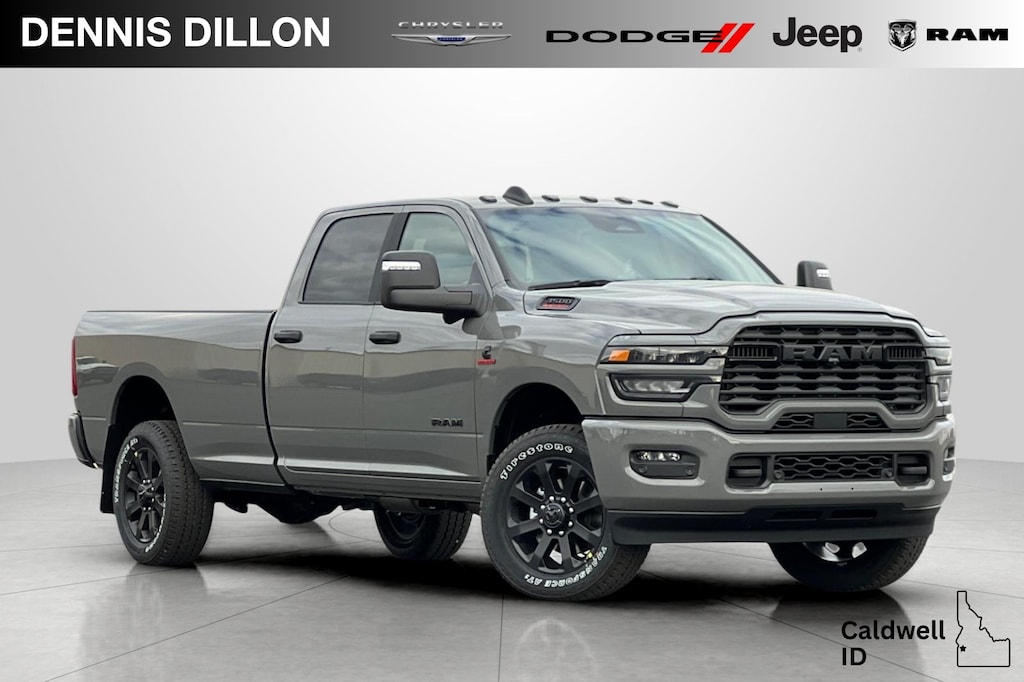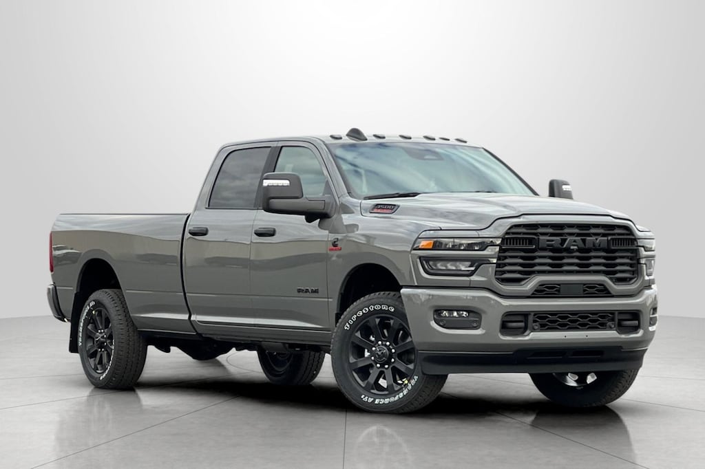 115V Auxiliary Front Power Outlet, 12" Touchscreen Display, 2 Way Rear Headrest Seat, 2nd Row In Floor Storage Bins, 4 Way Front Headrests, 4-Wheel Disc Brakes, 40/20/40 Split Bench Seat, 400W Inverter, 4G LTE Wi-Fi Hot Spot, 50 Gallon Fuel Tank, 5th Wheel/Gooseneck Towing Prep Group, 6 Speakers, 9 Alpine Speakers w/Subwoofer, ABS brakes, Active Lane Management System, Adaptive Steering System, Air Conditioning, Air Conditioning ATC w/Dual Zone Control, Alexa Built-In, Alloy wheels, AM/FM radio: SiriusXM, Apple CarPlay, Apple CarPlay/Android Auto, Auto High Beam Headlamp Control, Auto Power-Folding Mirrors, Auto-Dimming Rear-View Mirror, Auxiliary Switches Prep, Big Horn Level 2 Plus Equipment Group, Black Exterior Mirrors, Black Exterior Truck Badging, Black Interior Accents, Black Wheel Center Hub, Blind Spot & Cross Path Detection, Body Color Grille Surround, Brake assist, Bucket Seats, Bumpers: chrome, Center Hub, Clearance Lamps, Cloth 40/20/40 Bench Seat, Cluster 7.0" TFT Color Display, Compass, Connected Travel & Traffic Services, Connectivity - US/Canada, CTR Stop Lamp w/Cargo View Camera, Dampened Tailgate, Delay-off headlights, Delete Deployable Bed Step, Digital 3.0 Rear View Auto Dimming Mirror, Disassociated Touchscreen Display, Driver door bin, Drowsy Driver Detection, Dual Alternators Rated at 480 Amps, Dual front impact airbags, Dual front side impact airbags, Dual Glove Boxes, Dual Wireless Charging Pad, Electronic Stability Control, Emergency Vehicle Alert System (EVAS), Exterior 115V AC Outlet, Exterior Mirrors Courtesy Lamps, Exterior Mirrors w/Heating Element, Exterior Mirrors w/Supplemental Signals, Foam Bottle Insert (Door Trim Panel), Folding Flat Load Floor Storage, Footwell Courtesy Lamp, For Details Visit DriveUconnect.com, For More Info, Call 800-643-2112, Forward & Reverse Utility Lights, Front anti-roll bar, Front Armrest w/Cupholders, Front Center Armrest w/Storage, Front fog lights, Front License Plate Bracket, Front reading lights, Front Seat Back Map Pockets, Full Length Upgraded Floor Console, Fully automatic headlights, Global Telematics Box Module (TBM), Gloss Black Nostrils/Molded in Color Black Grille, Glove Box Lamp, Google Android Auto, GPS Antenna Input, GPS Navigation, HD Radio, Heated door mirrors, Heated Front Seats, Heated Steering Wheel, Illuminated entry, Integrated Voice Command w/Bluetooth, LED Bed Lighting, LED Tail Lamps, Locking Lower Glove Box, Low tire pressure warning, Luxury Steering Wheel, Manual Adjust 4-Way Driver Seat, Manual Adjust 4-Way Front Passenger Seat, Manufacturer's Statement of Origin, Mirror Running Lights, MOPAR Deployable Bed Step, MOPAR Spray In Bedliner, Night Edition, Occupant sensing airbag, Off-Road Information Pages, Outside temperature display, Overhead airbag, Overhead console, Painted Front Bumper, Painted Rear Bumper, Panic alarm, ParkView Rear Back-Up Camera, Passenger door bin, Passenger vanity mirror, Power 2-Way Driver Lumbar Adjust, Power Adjust 8-Way Driver Seat, Power Adjust Mirrors, Power Adjustable Pedals, Power door mirrors, Power Heated Fold Telescopic Mirrors, Power steering, Power Telescoping Mirrors, Power windows, Power-Adjustable Convex Aux Mirrors, Premium Cloth Bucket Seats, Quick Order Package 24Z Big Horn, Radio data system, Radio: Uconnect 5 Nav w/12.0" Display, Radio: Uconnect 5 w/8.4" Display, Rain Sensitive Windshield Wipers, Rear 60/40 Folding Seat, Rear Backup Alarm, Rear Dome w/On/Off Switch Lamp, Rear Folding Seat, Rear Power Sliding Window, Rear seat center armrest, Rear step bumper, Rear Wheelhouse Liners, Rear window defroster, Red Tail Lamp Bezels, Remote keyless entry, Remote Start System, Remote USB Port - Charge Only, Security Alarm, Selectable Tire Fill Alert, SiriusXM Radio Service, SiriusXM w/360L, Speed control, Steering Wheel Mounted Audio Controls, St Price includes: $1000 - 2026 National Bonus Cash . Exp. 11/03/2