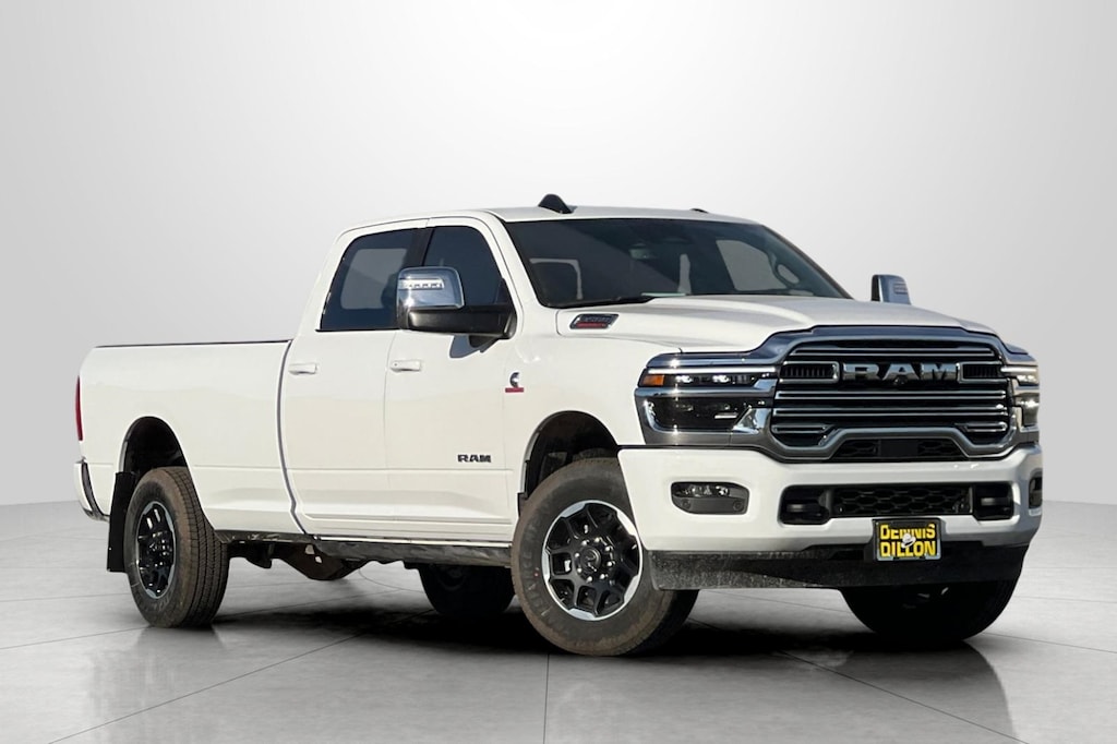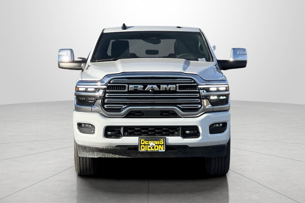 #1 Seat Foam Cushion, 10 Speakers, 115V Auxiliary Rear Power Outlet, 14.4" Touchscreen Display, 17 Speaker harman/kardon Premium Sound, 2 Way Rear Headrest Seat, 2nd Row In Floor Storage Bins, 4 Way Front Headrests, 4-Wheel Disc Brakes, 4G LTE Wi-Fi Hot Spot, 50 Gallon Fuel Tank, 5th Wheel/Gooseneck Towing Prep Group, ABS brakes, Active Lane Management System, Adaptive Steering System, Air Conditioning, Alexa Built-In, Alloy wheels, AM/FM radio: SiriusXM with 360L, Apple CarPlay, Apple CarPlay/Android Auto, Auto Adjust In Reverse Exterior Mirrors, Auto Dimming Exterior Passenger Mirror, Auto High Beam Headlamp Control, Auto Power-Folding Mirrors, Auto-Dimming Exterior Mirrors, Auto-dimming Rear-View mirror, Automatic temperature control, Black Wheel Center Hub, Brake assist, Bucket Seats, Bumpers: body-color, Chrome Exterior Mirrors, Cold Weather Group, Compass, Connected Travel & Traffic Services, Connectivity - US/Canada, CTR Stop Lamp w/Cargo View Camera, Dash Pass Thru Wire Circuits, Delay-off headlights, Disassociated Touchscreen Display, Driver door bin, Driver vanity mirror, Drowsy Driver Detection, Dual front impact airbags, Dual front side impact airbags, Dual Wireless Charging Pad, Electronic Stability Control, Emergency Vehicle Alert System (EVAS), Engine Block Heater, Exterior Mirrors Courtesy Lamps, Exterior Mirrors w/Heating Element, Exterior Mirrors w/Memory, Exterior Mirrors w/Supplemental Signals, Foam Bottle Insert (Door Trim Panel), Folding Flat Load Floor Storage, For Details Visit DriveUconnect.com, For More Info, Call 800-643-2112, Forward & Reverse Utility Lights, Front anti-roll bar, Front Center Armrest w/Storage, Front dual zone A/C, Front fog lights, Front License Plate Bracket, Front reading lights, Front Seat Back Map Pockets, Full Length Upgraded Floor Console, Fully automatic headlights, Garage door transmitter, Global Telematics Box Module (TBM), Google Android Auto, GPS Antenna Input, GPS Navigation, HD Radio, Heated door mirrors, Heated Front Seats, Heated front seats, Heated Steering Wheel, Heated steering wheel, High Back Seats, I/P Mounted Auxiliary Switches, Illuminated entry, Integrated Voice Command w/Bluetooth, Laramie Level 2 Plus Equipment Group, Leather Trim 40/20/40 Bench Seat, Leather Trimmed Bucket Seats, LED Bed Lighting, Low tire pressure warning, Manufacturer's Statement of Origin, Mirror Running Lights, MOPAR Deployable Bed Step, MOPAR Front & Rear Rubber Floor Mats, MOPAR Spray In Bedliner, MOPAR Winter Front Grille Cover, Navigation System, Occupant sensing airbag, Off-Road Information Pages, Outside temperature display, Overhead airbag, Overhead console, Panic alarm, ParkView Rear Back-Up Camera, Passenger door bin, Passenger vanity mirror, Power 2-Way Driver Lumbar Adjust, Power 2-Way Passenger Lumbar Adjust, Power Adjust 8-Way Driver Seat, Power Adjust 8-Way Front Passenger Seat, Power Adjust Mirrors, Power Adjustable Pedals w/Memory, Power Deployable Running Boards, Power door mirrors, Power driver seat, Power Heat Fold Memory Telescopic Mirrors, Power passenger seat, Power steering, Power Sunroof, Power Telescoping Mirrors, Power windows, Power-Adjustable Convex Aux Mirrors, Quick Order Package 24H Laramie, Radio data system, Radio: Uconnect 5 Nav w/12.0" Display, Radio: Uconnect 5 Nav w/14.4" Display, Rain Sensitive Windshield Wipers, Rear 60/40 Folding Seat, Rear reading lights, Rear seat center armrest, Rear step bumper, Rear window defroster, Remote keyless entry, Remote Tailgate Release, Security system, Selectable Tire Fill Alert, SiriusXM Radio Service, SiriusXM w/360L, Speed control, Split folding rear seat, Steering wheel mounted audio controls, Surround View Camera System, Tachometer, Tilt steering wheel, Towing Technology Group, Traction control, Traffic Sign Recognition, Trailer Reverse Guidance, Trailer Ti Price includes: $1000 - 2026 National Bonus Cash . Exp. 11/03/2