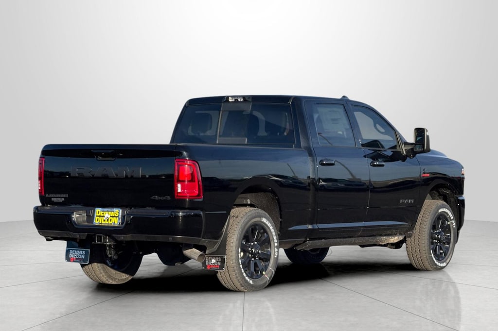 #1 Seat Foam Cushion, 10 Speakers, 115V Auxiliary Rear Power Outlet, 14.4" Touchscreen Display, 17 Speaker Harman/Kardon Premium Sound, 2 Way Rear Headrest Seat, 2nd Row in Floor Storage Bins, 4 Way Front Headrests, 4-Wheel Disc Brakes, 4G LTE Wi-Fi Hot Spot, 5th Wheel/Gooseneck Towing Prep Group, ABS brakes, Active Lane Management System, Adaptive Steering System, Air Conditioning, Alexa Built-in, Alloy wheels, AM/FM radio: SiriusXM with 360L, Apple CarPlay, Apple CarPlay/Android Auto, Auto Adjust in Reverse Exterior Mirrors, Auto Dimming Exterior Passenger Mirror, Auto High Beam Headlamp Control, Auto Level Rear Air Suspension, Auto Power-Folding Mirrors, Auto-Dimming Exterior Mirrors, Auto-dimming Rear-View mirror, Automatic temperature control, Black Exterior Mirrors, Black Exterior Truck Badging, Black Wheel Center Hub, Body Color Grille Surround, Brake assist, Bucket Seats, Bumpers: body-color, Center Stop Lamp with Cargo View Camera, Chrome Exterior Mirrors, Clearance Lamps, Compass, Connected Travel and Traffic Services, Connectivity - US/Canada, Delay-off headlights, Digital 3.0 Rear View Auto Dimming Mirror, Disassociated Touchscreen Display, Driver door bin, Driver vanity mirror, Drowsy Driver Detection, Dual Alternators Rated At 400 Amps, Dual Alternators Rated At 480 Amps, Dual front impact airbags, Dual front side impact airbags, Dual Wireless Charging Pad, Electronic Stability Control, Emergency Vehicle Alert System (EVAS), Engine Block Heater, Exterior Mirrors Courtesy Lamps, Exterior Mirrors with Heating Element, Exterior Mirrors with Memory, Exterior Mirrors with Supplemental Signals, Foam Bottle Insert (door Trim Panel), Folding Flat Load Floor Storage, For Details Visit DriveUconnect.com, For More Info, Call 800-643-2112, Forward and Reverse Utility Lights, Front anti-roll bar, Front Center Armrest w/Storage, Front dual zone A/C, Front fog lights, Front License Plate Bracket, Front reading lights, Front Seat Back Map Pockets, Full Length Upgraded Floor Console, Fully automatic headlights, Garage door transmitter, Global Telematics Box Module, Gloss Black Grille Billets/Accents, Google Android Auto, GPS Antenna Input, GPS Navigation, HD Radio, Heated door mirrors, Heated Front Seats, Heated front seats, Heated Steering Wheel, Heated steering wheel, High Back Seats, Illuminated entry, Integrated Voice Command with Bluetooth, Laramie Level 2 Plus Equipment Group, Leather Trim 40/20/40 Bench Seat, Leather Trimmed Bucket Seats, LED Bed Lighting, Low tire pressure warning, Manufacturer's Statement of Origin, Mirror Running Lights, MOPAR Deployable Bed Step, MOPAR Front and Rear Rubber Floor Mats, MOPAR Spray in Bedliner, MOPAR Trailer Camera Wiring with No Camera, Navigation System, Night Edition, Occupant sensing airbag, Off-Road Information Pages, on Board Power System - 2.4KW, Outside temperature display, Overhead airbag, Overhead console, Panic alarm, ParkView Rear Back-Up Camera, Passenger door bin, Passenger vanity mirror, Power 2-Way Driver Lumbar Adjust, Power 2-Way Passenger Lumbar Adjust, Power Adjust 8-Way Driver Seat, Power Adjust 8-Way Front Passenger Seat, Power Adjust Mirrors, Power Adjustable Pedals with Memory, Power Deployable Running Boards, Power door mirrors, Power driver seat, Power Heat Fold Memory Telescopic Mirrors, Power passenger seat, Power steering, Power Sunroof, Power Telescoping Mirrors, Power windows, Power-Adjustable Convex Aux Mirrors, Quick Order Package 24H Laramie, Radio data system, Radio: Uconnect 5 Nav with 14.4" Display, Radio: Uconnect 5 Navigation with 12.0" Display, Radio/Driver Seat/Mirrors/Pedals Memory, Rain Sensitive Windshield Wipers, Rear 60/40 Folding Seat, Rear reading lights, Rear seat center armrest, Rear step bumper, Rear window defroster, Remote keyless entry, Remote Tailgate Release, Security sys Price includes: $1000 - 2026 National Bonus Cash . Exp. 04/30/2
