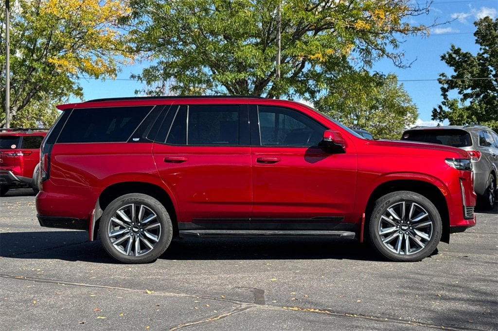 4WD, Black Leather, 16.9 Diagonal OLED Infotainment Screen, 19 Speakers, 2-Presets Memory For Driver Seat Adjuster, 3.23 Axle Ratio, 3rd row seats: split-bench, 4-Way Power Driver Lumbar Seat Adjuster, 4-Way Power Front Passenger Lumbar Seat Adjuster, 4-Wheel Disc Brakes, 8-Way Power Driver Seat Adjuster, 8-Way Power Front Passenger Seat Adjuster, ABS brakes, Adaptive suspension, Air Conditioning, Air Ionizer, AKG Studio 19-Speaker Audio System, Alloy wheels, AM/FM radio: SiriusXM with 360L, Apple CarPlay/Android Auto, Audio memory, Auto High-beam Headlights, Auto tilt-away steering wheel, Auto-dimming door mirrors, Auto-dimming Rear-View mirror, Automatic Emergency Braking, Automatic temperature control, Body-Color Door Handles, Brake assist, Bumpers: body-color, Compass, Delay-off headlights, Door Lock & Latch Shields, Driver door bin, Driver vanity mirror, Dual front impact airbags, Dual front side impact airbags, Electronic Cruise Control w/Set & Resume Speed, Electronic Limited-Slip Differential, Electronic Stability Control, Emergency communication system: OnStar and Cadillac connected services capable, Enhanced Automatic Parking Assist, Four wheel independent suspension, Front anti-roll bar, Front Bucket Seats, Front Center Armrest w/Storage, Front dual zone A/C, Front reading lights, Fully automatic headlights, Garage door transmitter, Glass Breakage Sensor, HD Radio, Heads-Up Display, Heated & Ventilated Driver & Front Passenger Seats, Heated door mirrors, Heated Driver & Front Passenger Seats, Heated front seats, Heated rear seats, Heated steering wheel, Hitch Guidance w/Hitch View, Illuminated entry, In-Vehicle Trailering System App, Integrated Trailer Brake Controller, Lane Keep Assist w/Lane Departure Warning, Leather Seating Surfaces w/Precision Perf Inserts, Leather steering wheel, Low tire pressure warning, Magnetic Ride Control Suspension, Memory seat, Navigation System, Occupant sensing airbag, Outside temperature display, Overhead airbag, Overhead console, Panic alarm, Passenger door bin, Passenger vanity mirror, Power door mirrors, Power driver seat, Power Liftgate, Power moonroof, Power Panoramic Tilt-Sliding Sunroof, Power passenger seat, Power steering, Power windows, Radio data system, Radio: AM/FM/SiriusXM w/Navigation, Rain sensing wipers, Rear air conditioning, Rear anti-roll bar, Rear Camera Mirror, Rear Camera Mirror Washer, Rear Cross Traffic Alert, Rear reading lights, Rear window defroster, Rear window wiper, Reconfigurable Full-Color Head-Up Display, Remote keyless entry, Roof rack: rails only, Running Board Assist Steps, Security system, SiriusXM w/360L, Speed control, Split folding rear seat, Spoiler, Steering wheel memory, Steering wheel mounted audio controls, Tachometer, Teen Driver, Telescoping steering wheel, Theft-Deterrent Alarm System, Tilt steering wheel, Traction control, Trailer Side Blind Zone Alert, Trip computer, Turn signal indicator mirrors, Variably intermittent wipers, Vehicle Inclination Sensor, Vehicle Interior Movement Sensor, Ventilated front seats, Voltmeter, Wheels: 22 12-Spoke Polished Alloy, Wireless Apple CarPlay/Wireless Android Auto, 4WD, Black Leather.