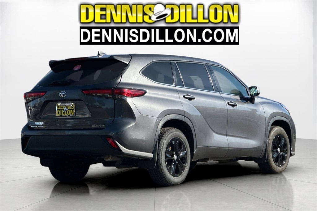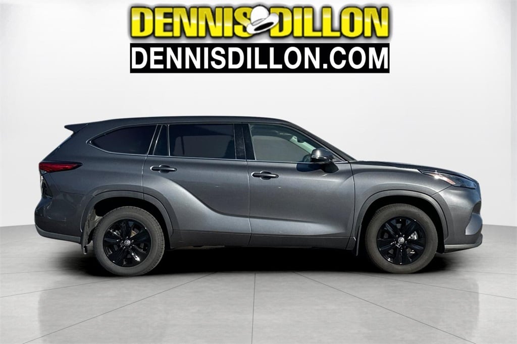 Magnetic Gray 2022 Toyota Highlander XLE AWD 8-Speed Automatic 3.5L V6 DOHC 3.003 Axle Ratio, 3rd row seats: split-bench, 4-Wheel Disc Brakes, 6 Speakers, ABS brakes, Air Conditioning, Alloy wheels, AM/FM radio: SiriusXM, Apple CarPlay/Android Auto, Auto High-beam Headlights, Auto-dimming Rear-View mirror, Automatic temperature control, Brake assist, Bumpers: body-color, Delay-off headlights, Driver door bin, Driver vanity mirror, Dual front impact airbags, Dual front side impact airbags, Electronic Stability Control, Emergency communication system: Safety Connect with 1-year trial, Exterior Parking Camera Rear, Four wheel independent suspension, Front anti-roll bar, Front Bucket Seats, Front Center Armrest, Front dual zone A/C, Front fog lights, Front reading lights, Fully automatic headlights, Garage door transmitter: HomeLink, Heated door mirrors, Heated Front Bucket Seats, Heated front seats, Illuminated entry, Knee airbag, Leather Shift Knob, Low tire pressure warning, Occupant sensing airbag, Outside temperature display, Overhead airbag, Overhead console, Panic alarm, Passenger door bin, Passenger vanity mirror, Power door mirrors, Power driver seat, Power Liftgate, Power moonroof, Power passenger seat, Power steering, Power windows, Radio: Audio Plus, Rear air conditioning, Rear anti-roll bar, Rear reading lights, Rear window defroster, Rear window wiper, Reclining 3rd row seat, Remote keyless entry, Roof rack: rails only, Security system, SofTex Seat Trim, Speed control, Speed-sensing steering, Split folding rear seat, Spoiler, Steering wheel mounted audio controls, Tachometer, Telescoping steering wheel, Tilt steering wheel, Traction control, Trip computer, Turn signal indicator mirrors, Variably intermittent wipers, Wheels: 18" Machined-Finish Alloy.